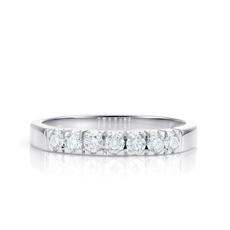 Alianza "Córdoba" clásica con Brillantes engastados en garras. Es una alianza clásica y sencilla que destaca por el brillo de los diamantes en hilera, donde destaca el brillo, la elegancia y belleza. Se realiza con diferentes tamaños de brillantes y quilatajes. Consulte precios.