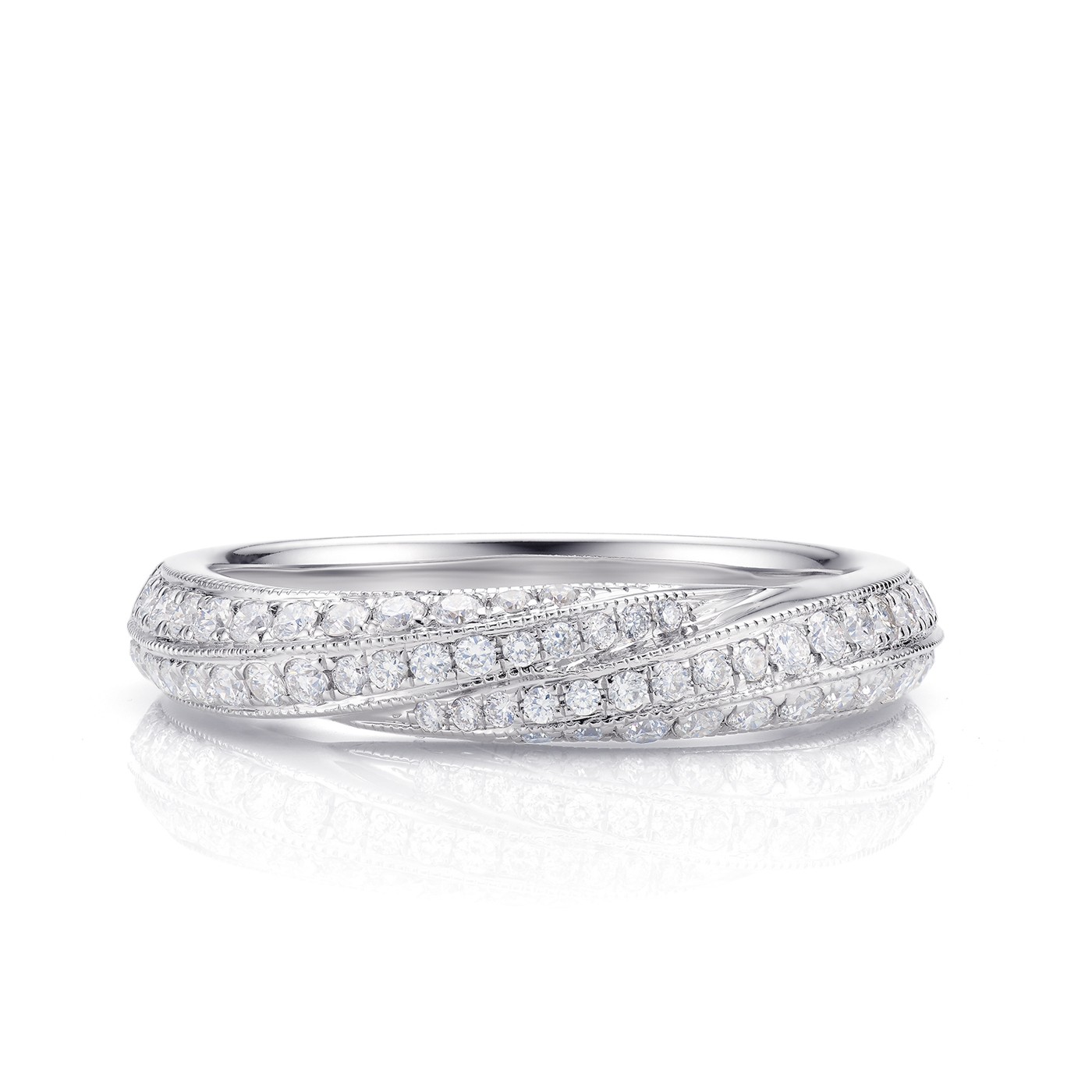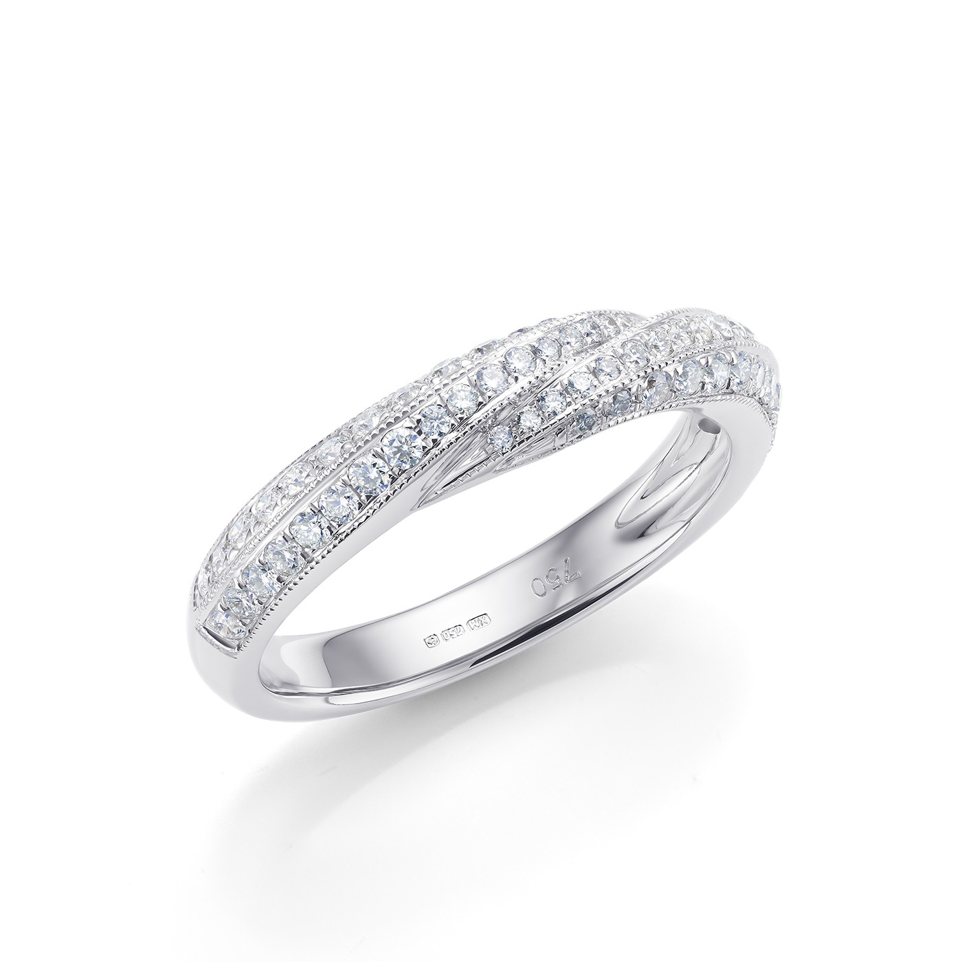 Alianza "Mila" entrelazada brillantes oro blanco 18K. Una alianza especial por su diseño vanguardista perfecta como alianza de pedida o de matrimonio. Consulte disponibilidad. REF:SRX 7