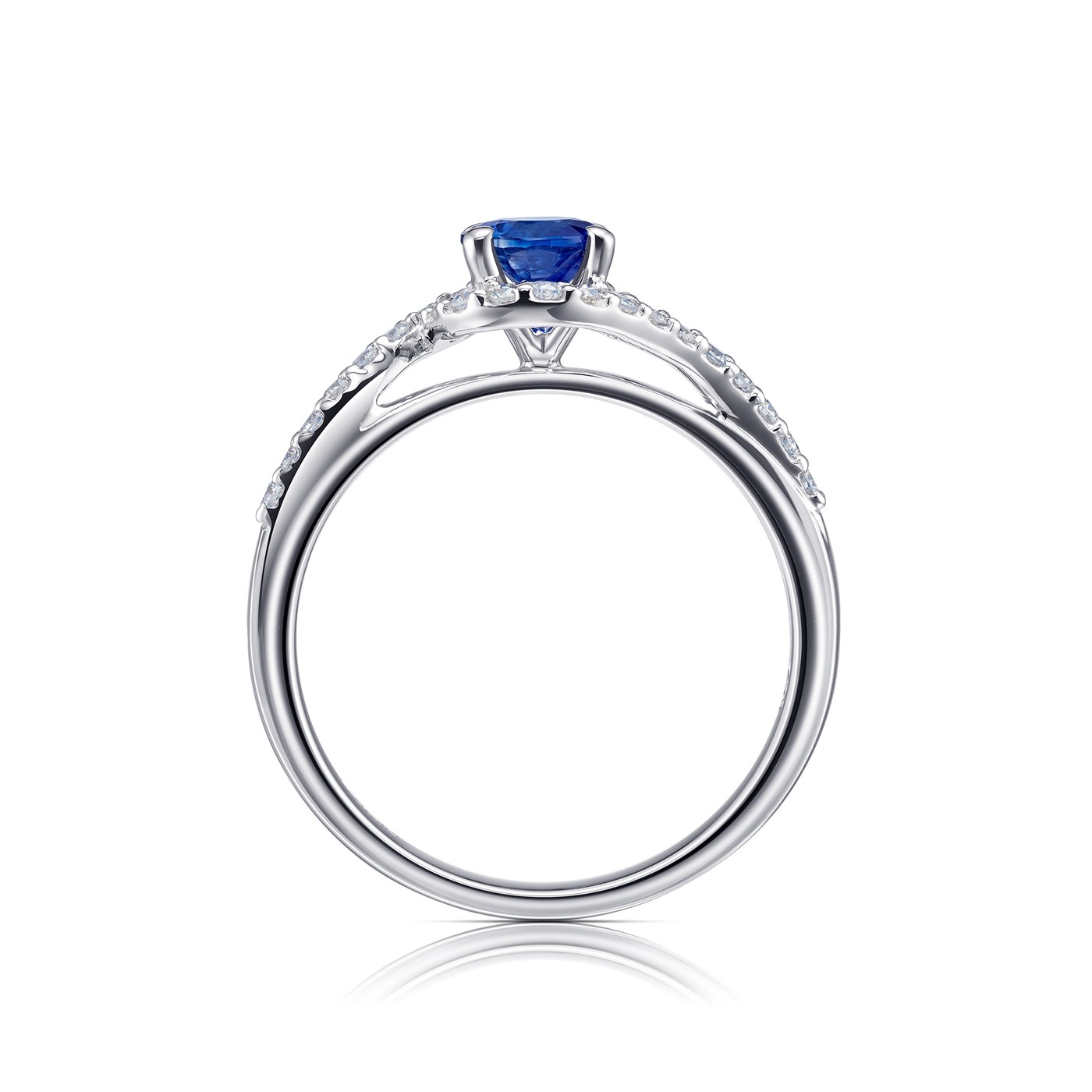 Anillo "Blue Phuket " con Zafiro Ceylan y orla especial de brillantes. Elegante anillo donde el Zafiro queda realzado por la orla y el movimiento del brazo de brillantes. Un anillo perfecto para la pedida de mano. Ref: SR39 ZAF