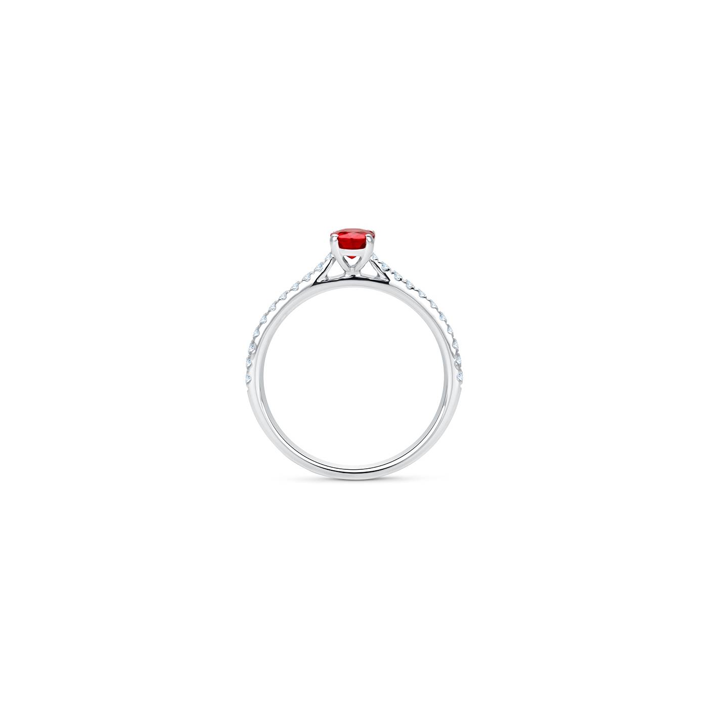 Anillo clásico de oro de 18K con un rubí AAA de 0,55 cst con diamantes certificados
