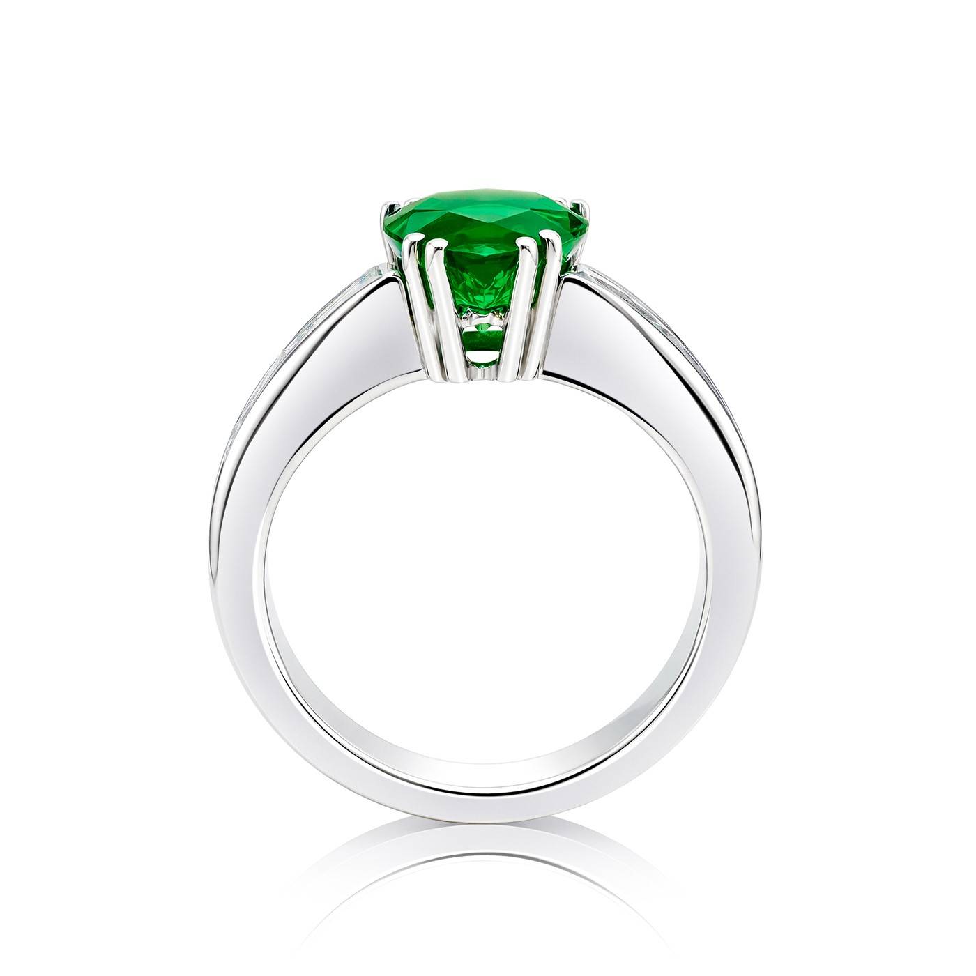 Pieza de joyería realizada en oro blanco 18 kilates. Una de nuestras elegantes joyas con esmeralda y diamantes que podrás encontrar en anillos con esmeraldas colombianas elegantes y exclusivos para un compromiso o para aniversario. El color verde simboliza Esperanza. Esta joya, diseñada por Jorge Juan Joyeros, está concebida para lucir en momentos especiales. Su porte elegante y femenino nos permite ver el trabajo del maestro joyero. Es una joya a la cual se acompaña con 6 diamantes talla baguette de peso total 1,48 quilates, elegantes y discretos dando un todo de feminidad a la pieza. Visítanos en Jorge Juan Joyeros sin compromiso.