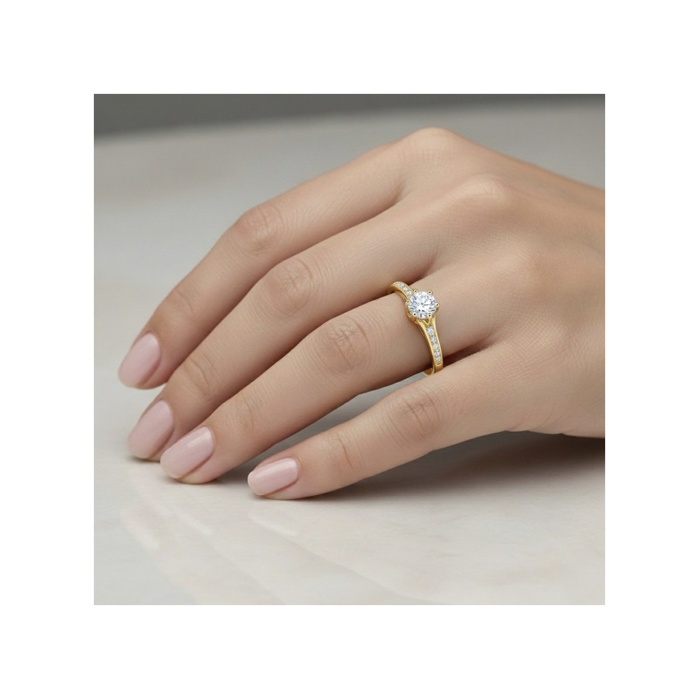 Elegante anillo con brillantes realizado en oro amarillo 18k en nuestro taller de joyería de Madrid. La forma de la garra que recuerda a la flor de loto y el brazo en disminución hacen de este anillo un regalo especial. En Jorge Juan joyeros cuidamos los pequeños detalles y nuestro equipo de gemólogos te asesorará en cuanto a nuestros diferentes modelos así como las calidades de diamante que trabajamos. Si desea ver anillos de oro amarillo estamos a su disposición. REF: SR6 OA
