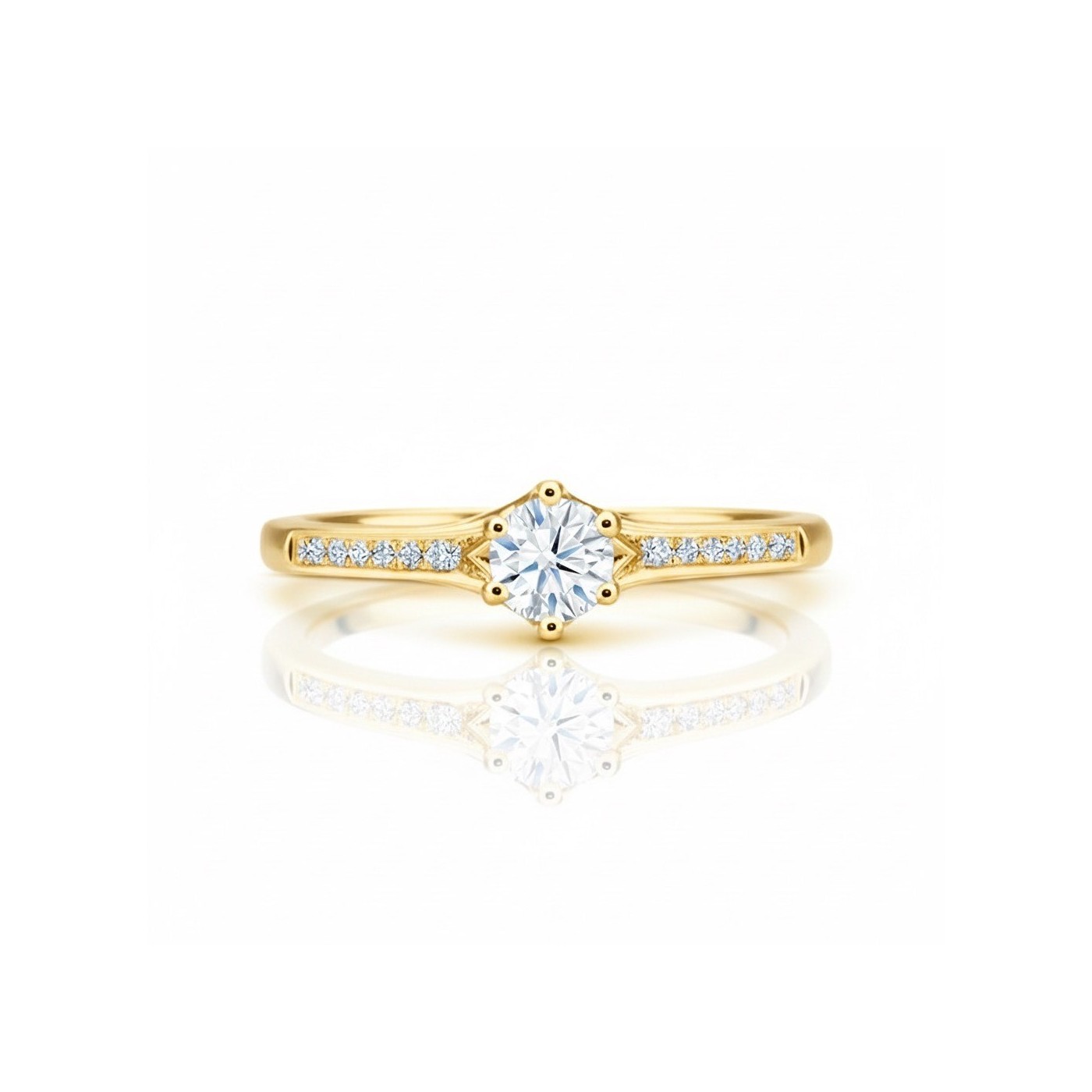 Anillo con Brillante central engastado con seis garras en forma de loto y brillantes en el brazo en oro 18k "Sydney" SR6 0A