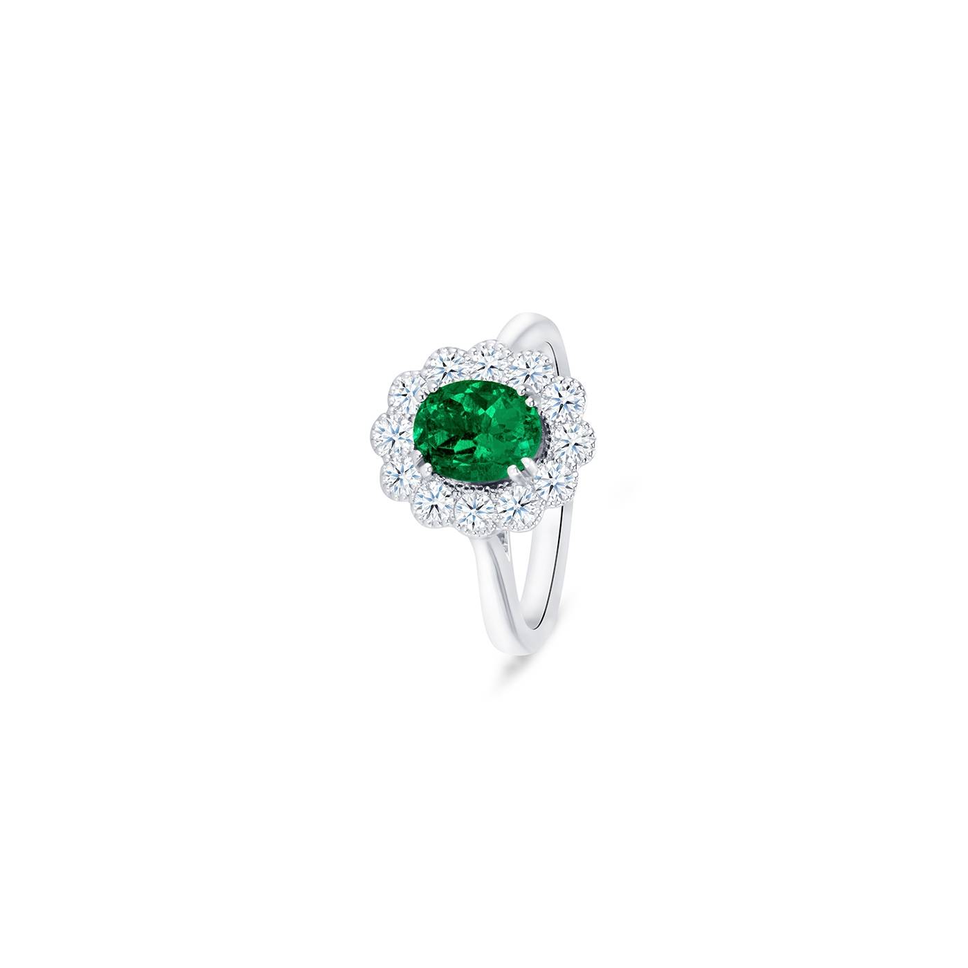 Una preciosa pieza de joyería con esmeralda rodeada de Diamantes. Sortija "Green Osaka" de Jorge Juan joyeros frabricado en Oro 18k esta joya está realilzada está diseñada para lucir como anillo de compromiso o aniversario. Aquí podrás ver la colección de anillos de esmeralda que se distingue por la calidad de nuestras gemas así como por la terminación de nuestras joyas fabricadas en nuestro taller de joyería en Madrid. Encuentra una amplia selección y visítanos en Jorge Juan Joyeros. REFERENCIA SR 73. GREEN OSAKA