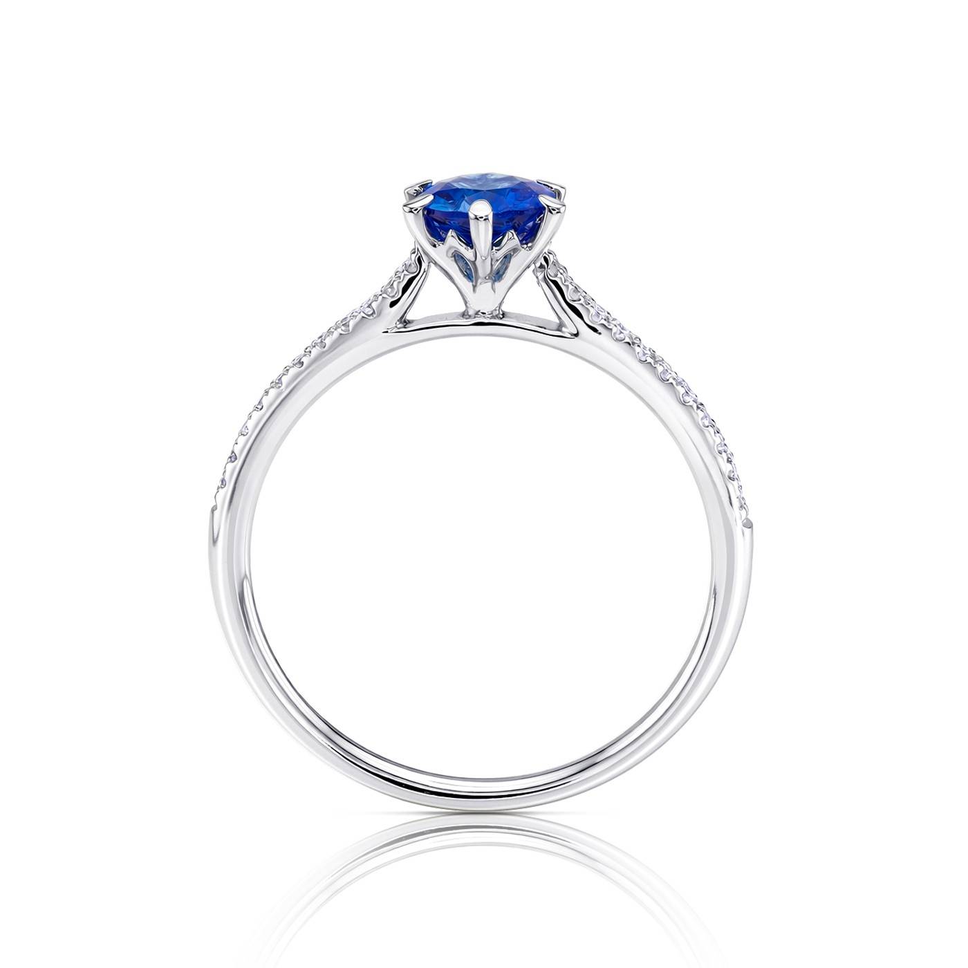 Elegante anillo con zafiro azul corte redondo y brillantes en el brazo, en oro blanco 18K, perfecto para anillo de compromiso. El peso de los brillantes es de 0,08 quilates de calidad G-VS. En Jorge Juan joyeros encontrarás la espectacular gama de azules del zafiro en calidad Gem y AAA, Royal Blue. Cada zafiro es único en color, pureza y talla porque nuestras piedras son naturales. REFERENCIA SR 110 Blue Milan- B