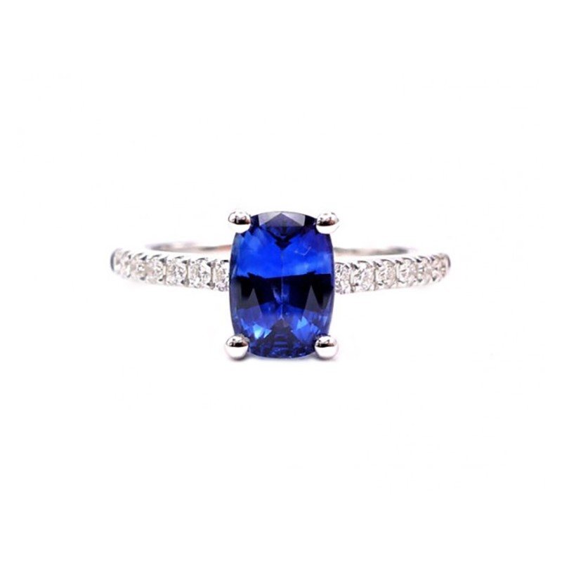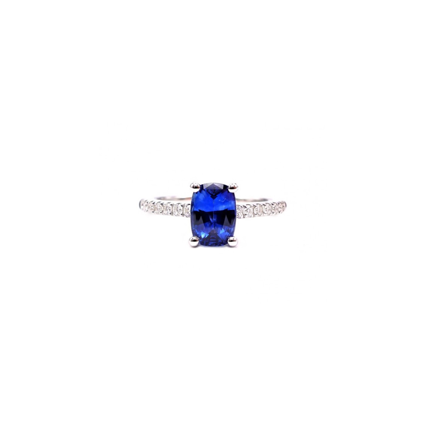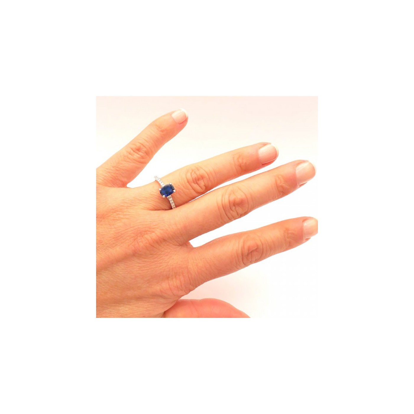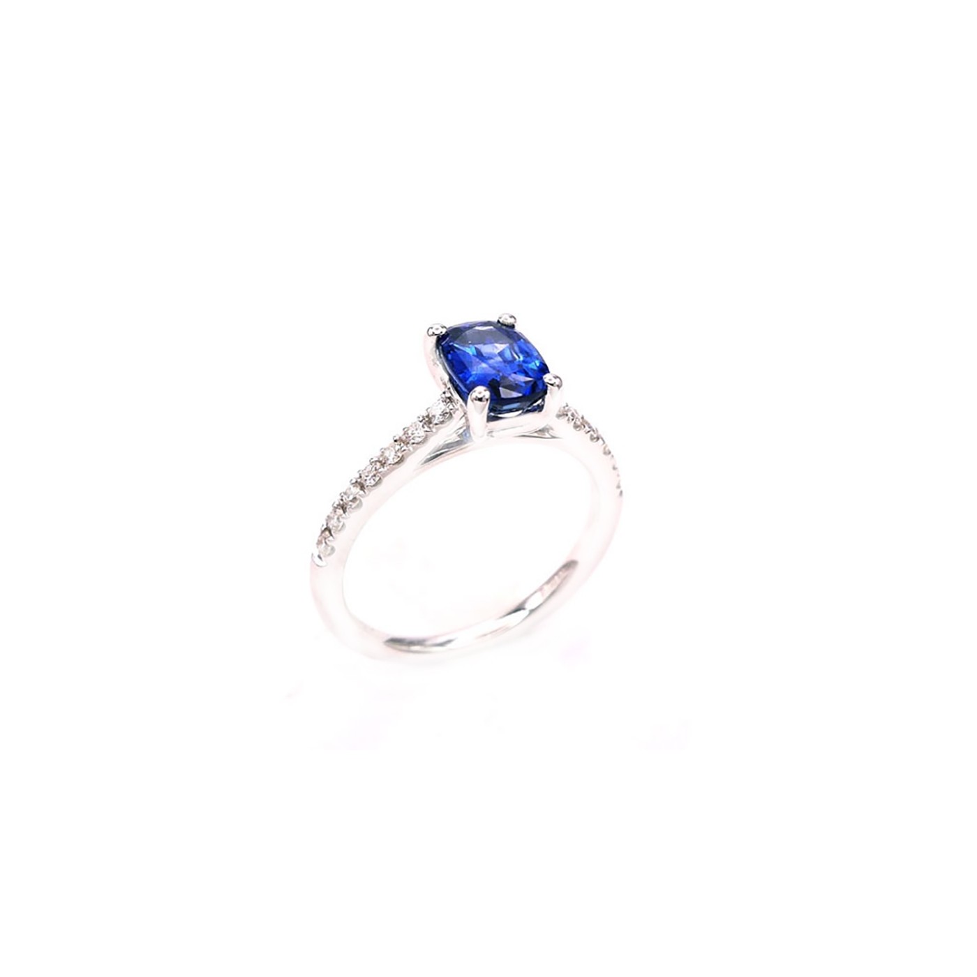 Anillo de Brillantes con Zafiro Azul Central BLUE CAIRO. Anillo elegante y sencillo para compromiso. El color azul profundo del zafiro simboliza la serenidad y la calma. Para amantes del color azul. Anillo de Zafiro Azul de color terciopelo. Una joya perfecta como sortija de compromiso para la pedida.