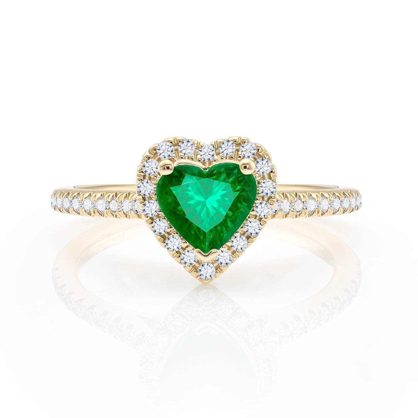 Anillo de Esmeralda talla corazón con diamantes F-VS1 en oro amarillo de 18K