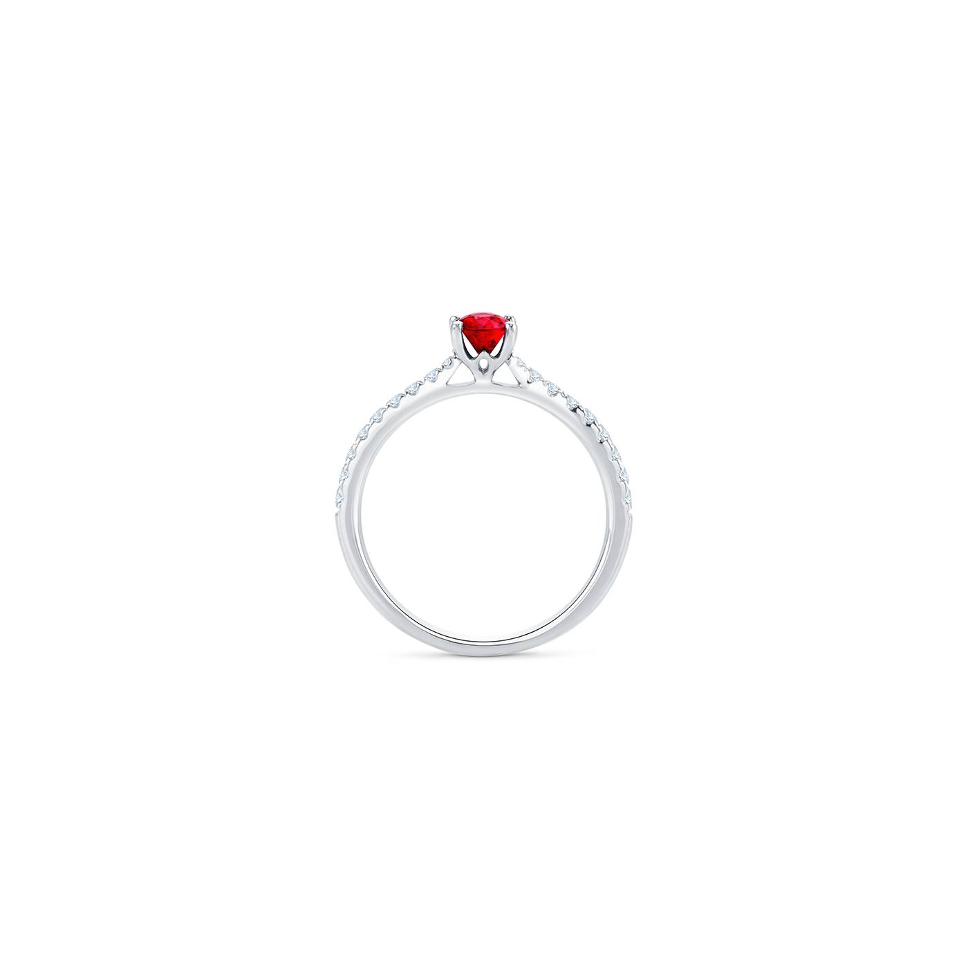 Anillo de oro 18K con rubí rojo vivido de 0.69cts acompañado de diamantes en el brazo F/E- vs-vvs