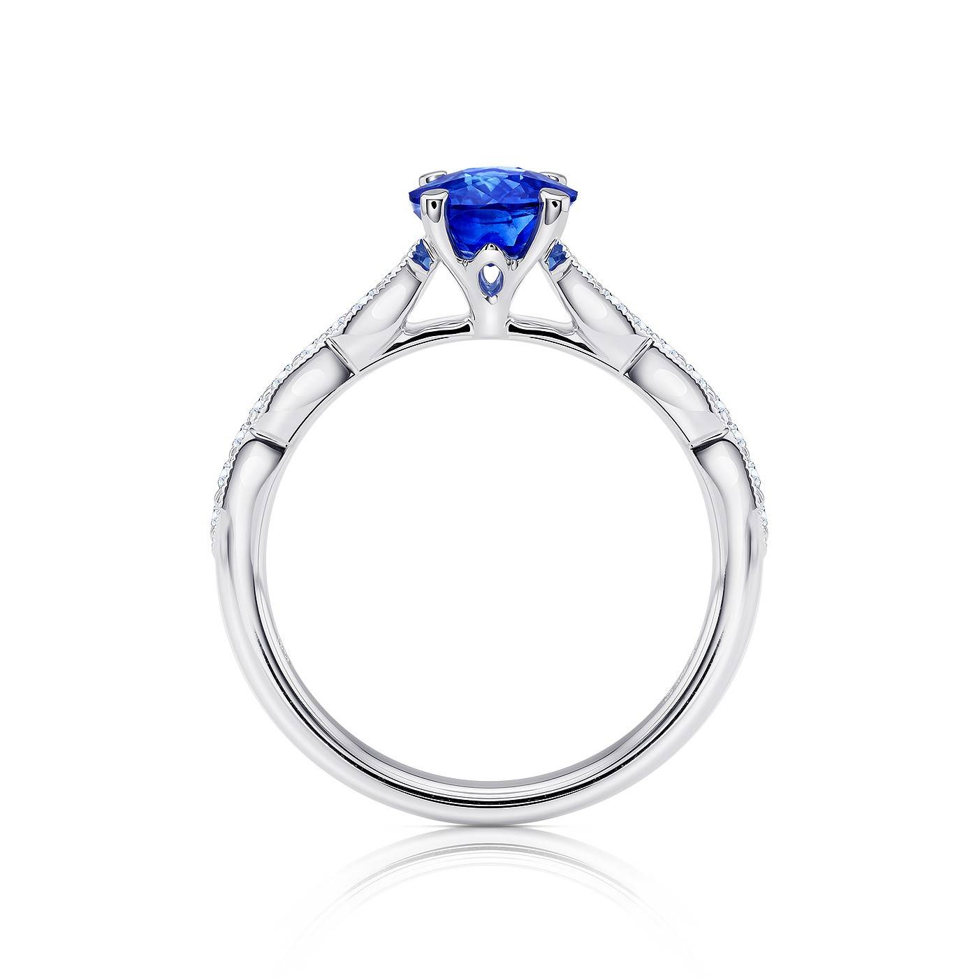 Anillo de oro blanco de 18K con zafiro oval de 1.19 ct y 18 Brillantes con peso total de 0.14 ct, calidad GVS . Una creación de la colección anillos con zafiros de Jorge Juan Joyeros. Especialistas en Piedras de Color y Diamantes. Este pieza de joyería tiene como elemento principal el zafiro oval de un color azul terciopelo inigualable, siendo una joya ideal para el compromiso o un aniversario, descubre nuestra selección en Jorge Juan Joyeros.
