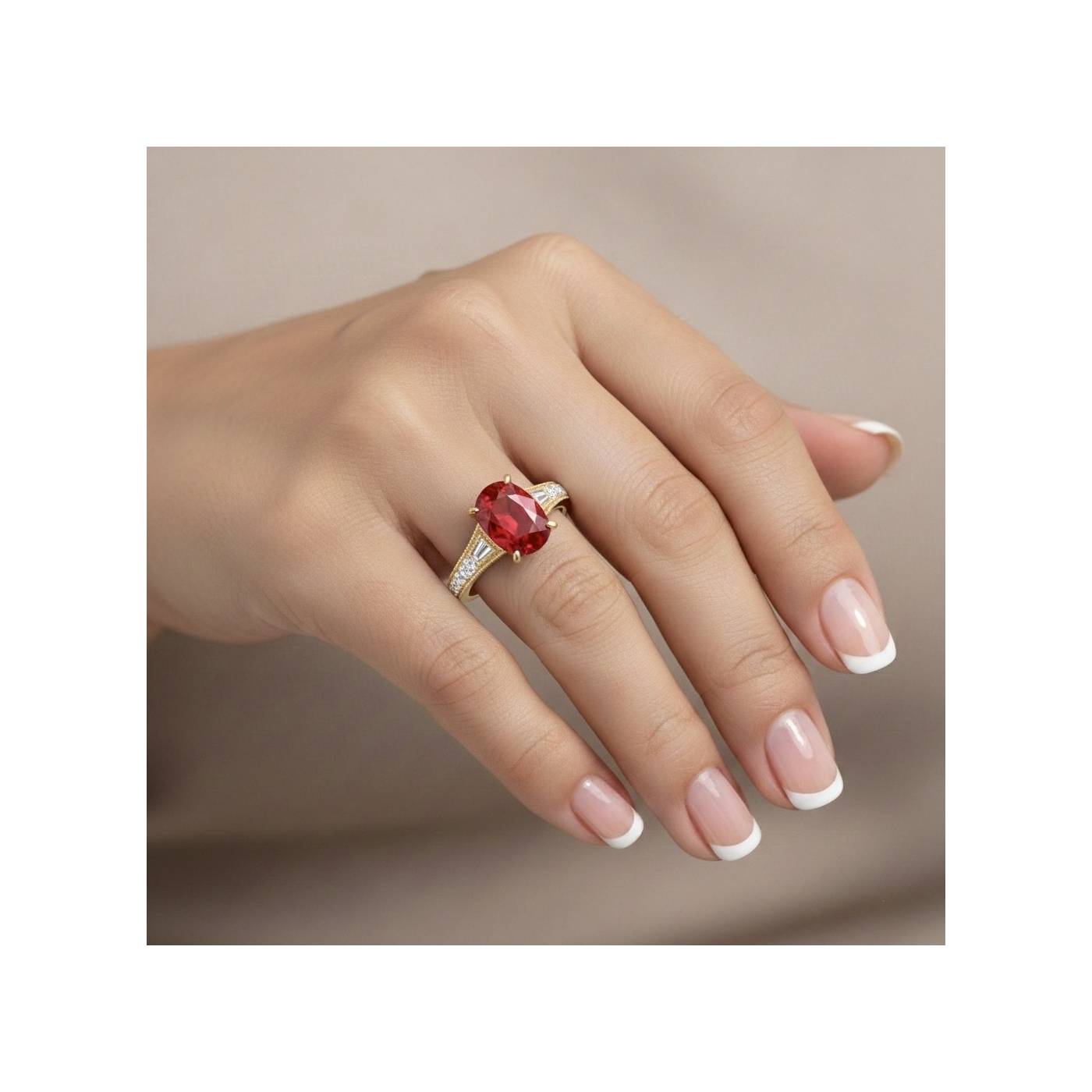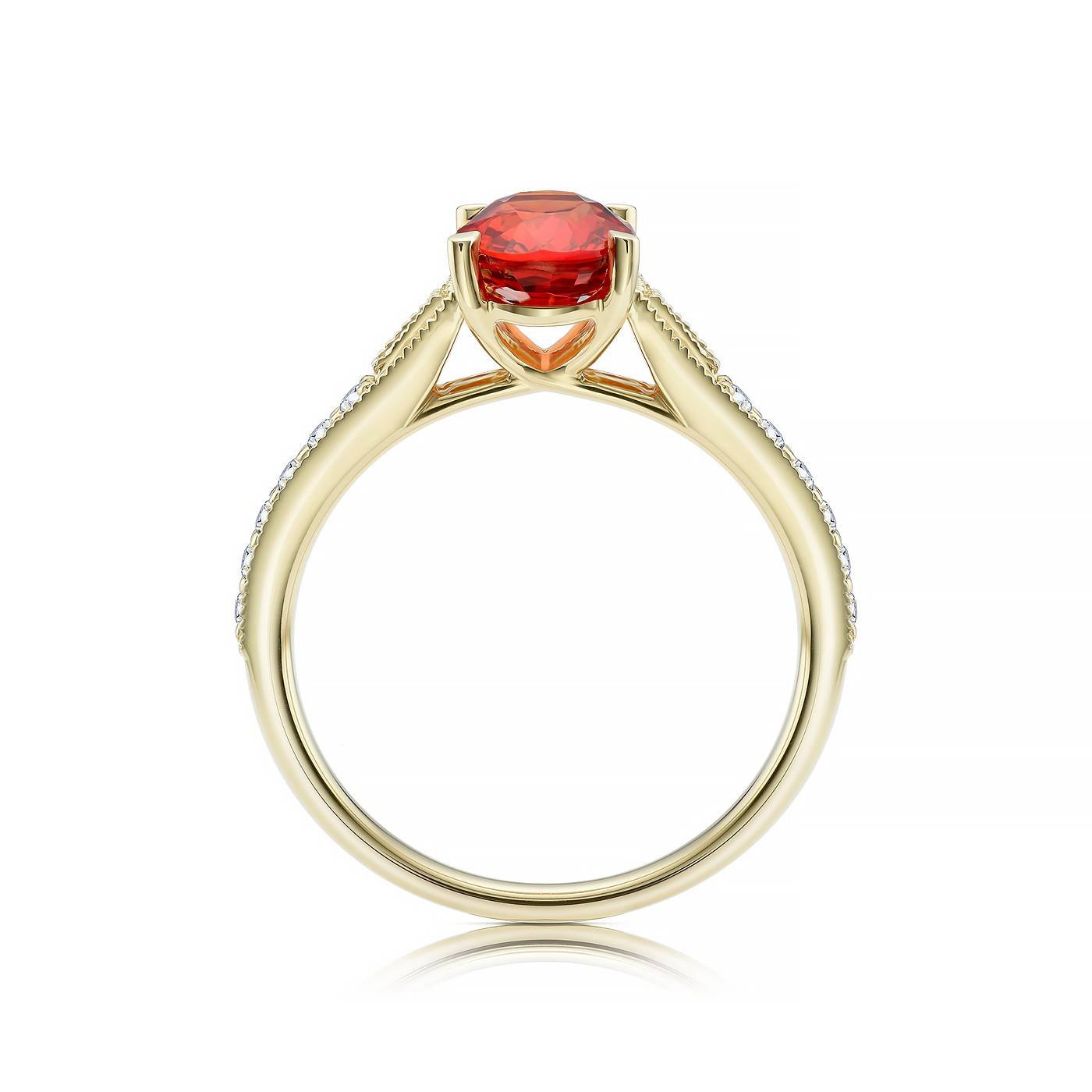 Anillo de oro rosa con zafiro naranja y diamantes a los lados con y un exquisito color azul diseñado y realizado en alta joyería