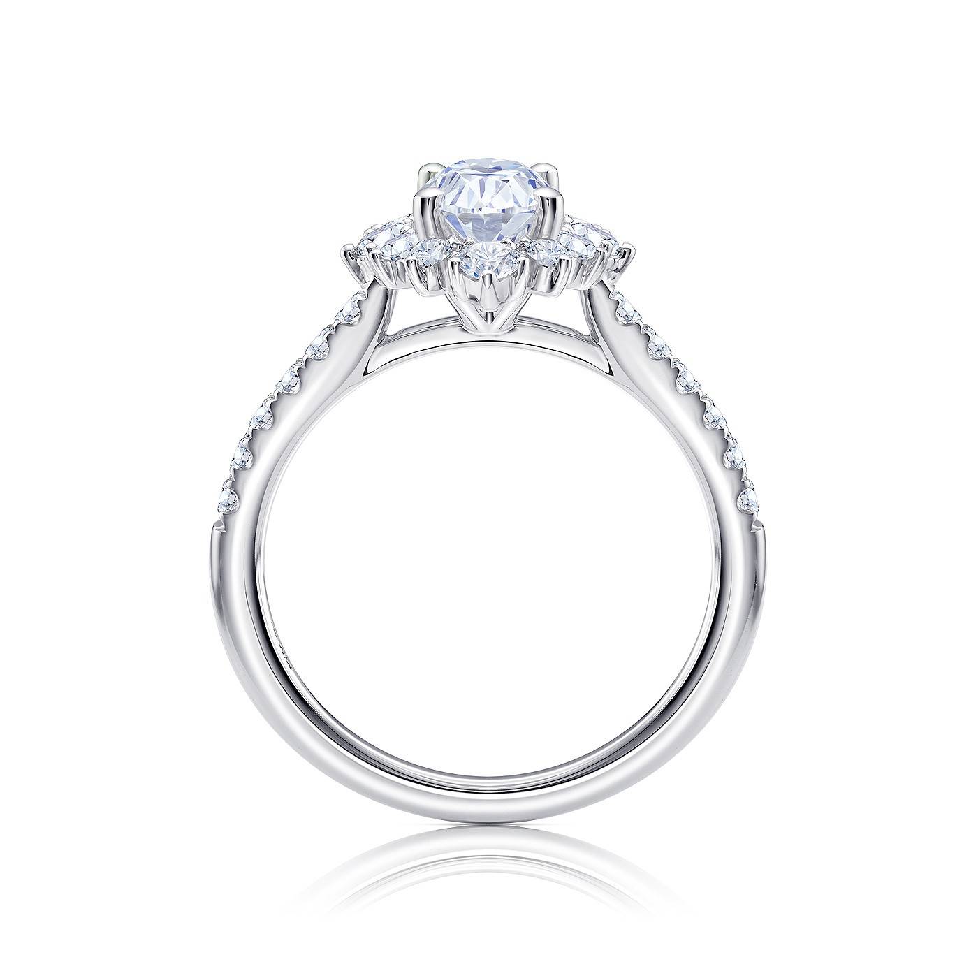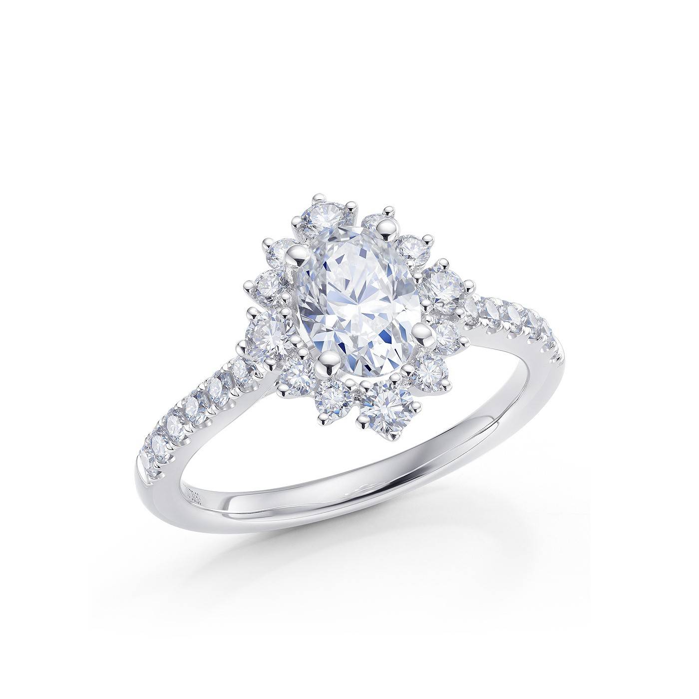 Anillo Oval con Orla Imperial de brillantes acompañado por brillantes en el brazo. Este elegante anillo destaca por la forma alargada del Diamante Oval y luce de forma especial por la orla que le acompaña en forma de corona. Las calidades que utilizamos para los Diamantes centrales vienen siempre certificadas por la GIA y los brillantes pequeños que acompañan, son siempre cuidadosamente seleccionados por nuestro equipo de gemólogos.