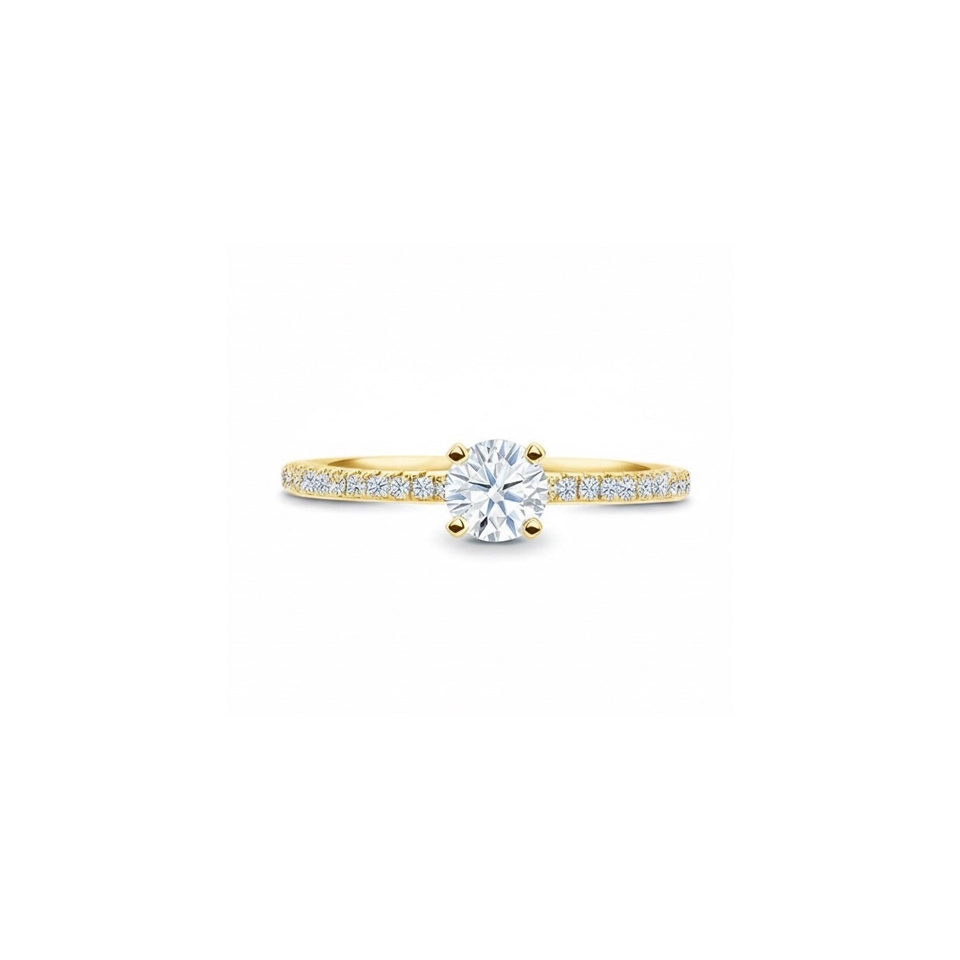 Anillo en oro amarillo "Minami" Compromiso con Brillante central y brillantes en el brazo