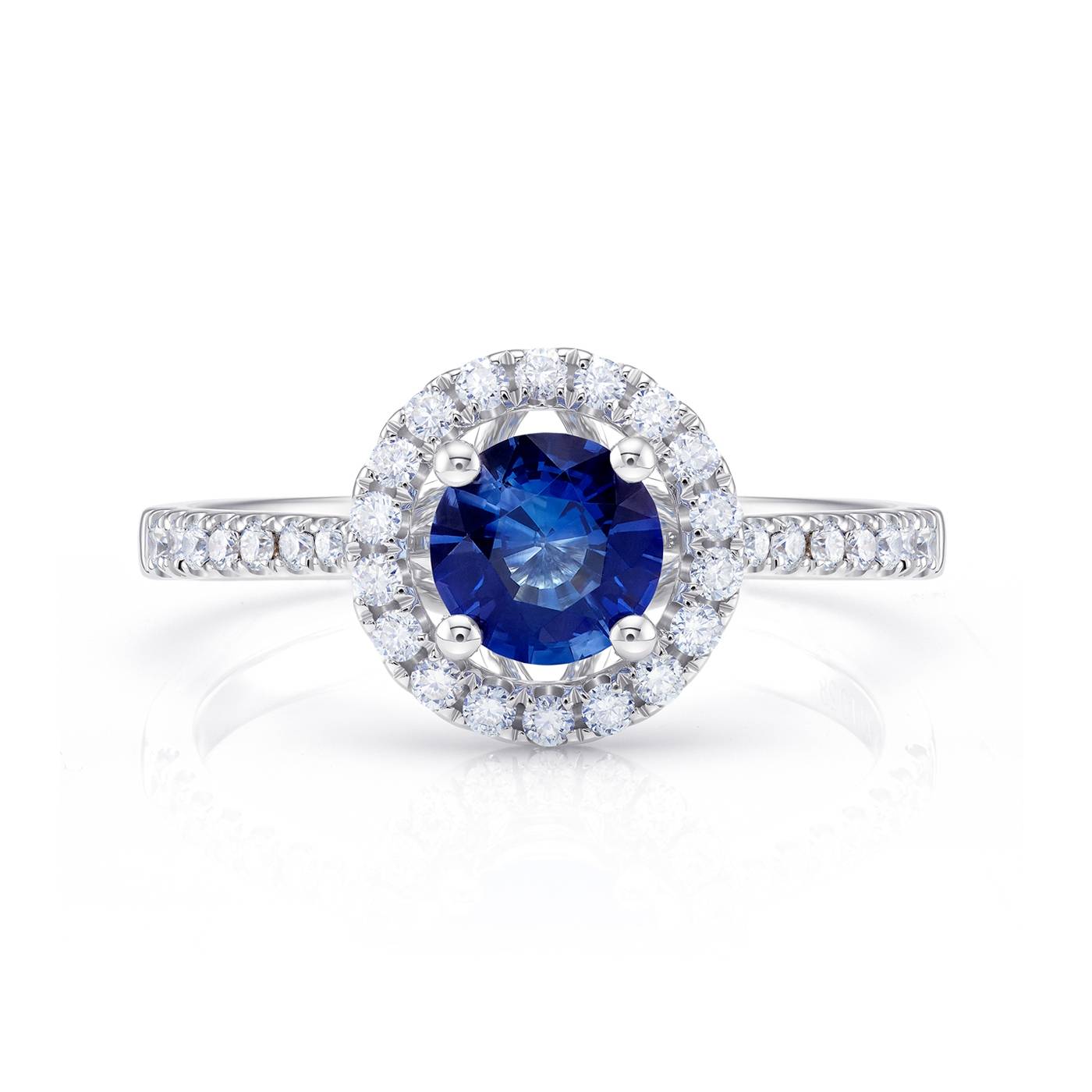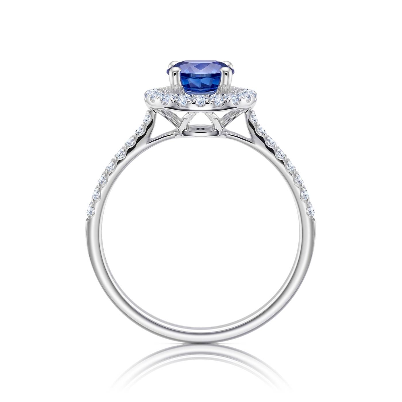 Anillo en oro blanco 18K clásico con zafiro azul y brillantes en la orla, calidad y prestigio. Este modelo es perfecto para verlo en la colección de compromiso por la belleza que otorgan los brillos de los diamantes. En Jorge Juan Joyeros disponemos de una amplia selección de anillos con zafiros donde podrás ver y probarte cada uno de ellos. Con dos joyerías en Madrid, en nuestras joyerías te asesoraremos sobre nuestros productos y gemas preciosas.