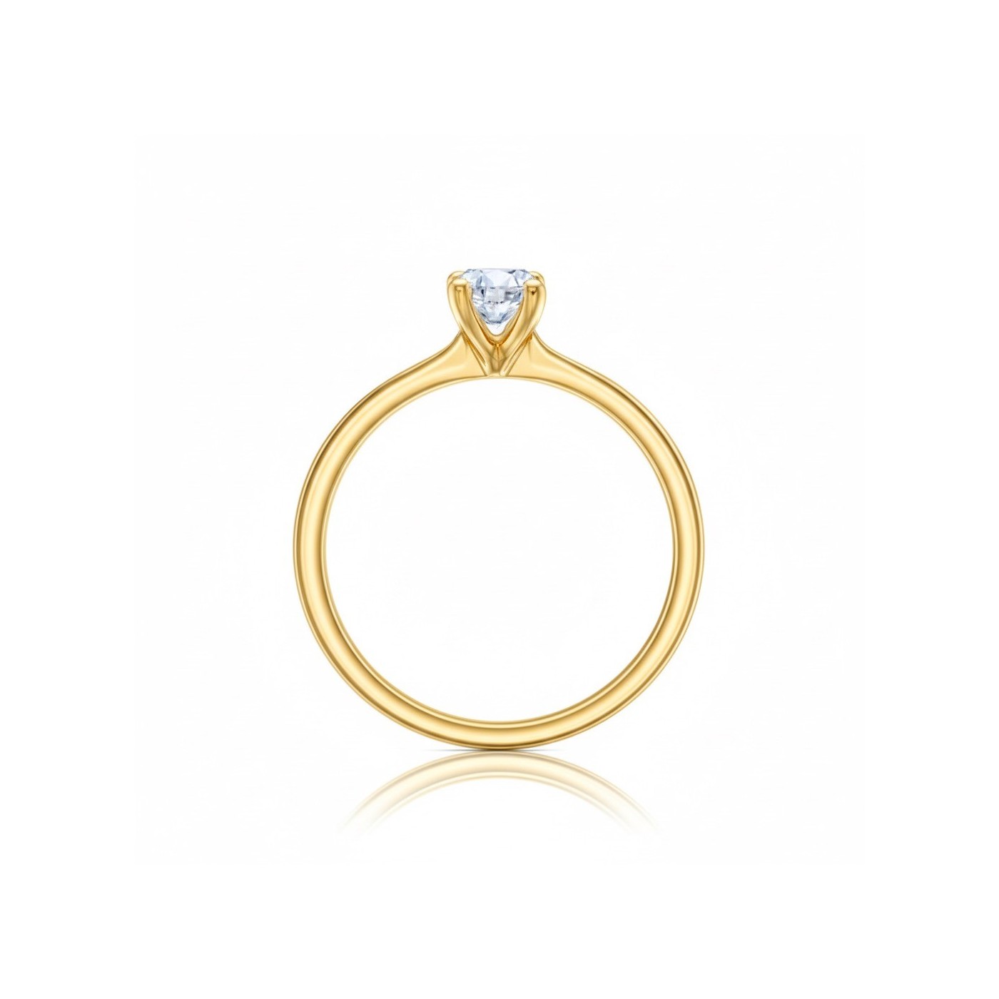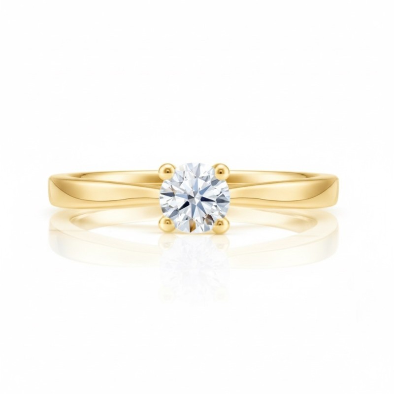 Anillo "Golden Safed" con Diamante y oro 18k. Un anillo sencillo donde el diamante luce montado con 4 garras, permitiendo el paso de la luz. Este anillo se fabrica en diferentes tamaños de Diamante, siempre certificados para adaptarnos a las necesidades de cada cliente. La pureza de líneas hace que este anillo sea un clásico, ideal para lucir en cualquier ocasión.