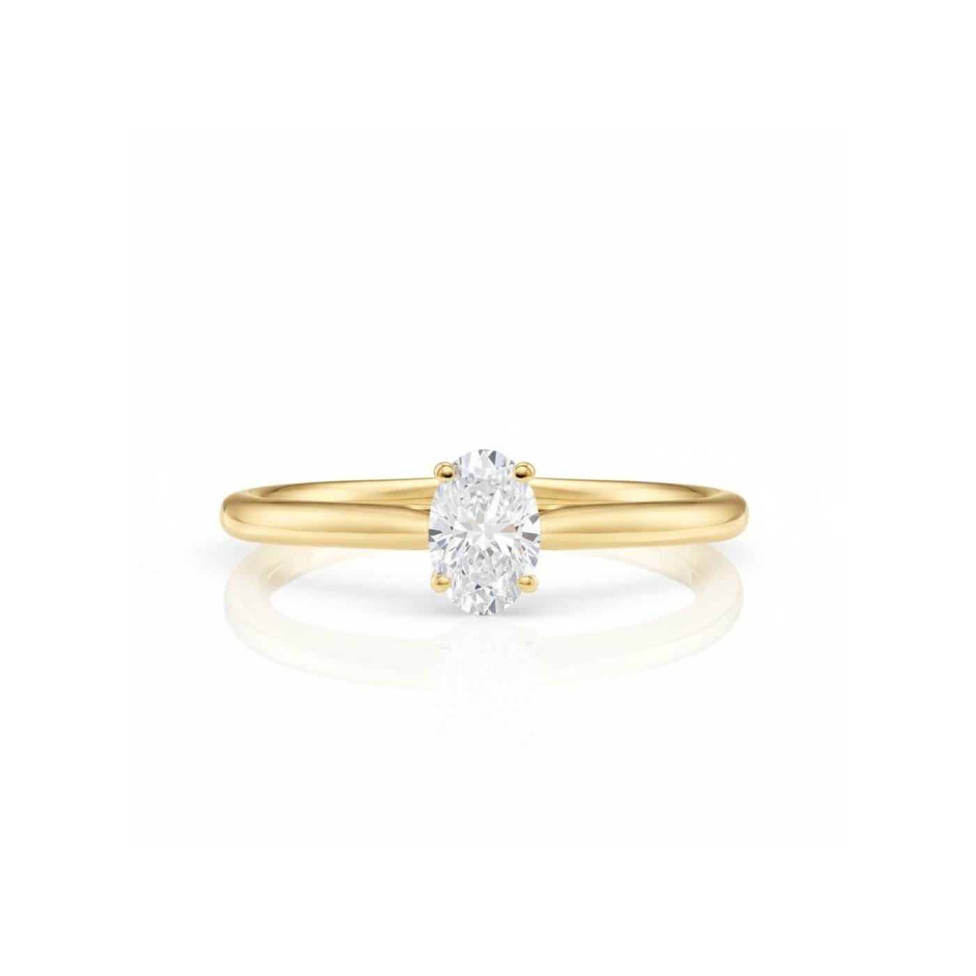 Anillo "Golden Solitaire" con Diamante talla oval y oro amarillo 18k. La forma ovalada del diamante hace que esta gema preciosa gane en apariencia y se adapte de forma harmoniosa a la mano. El conjunto sencillo del oro amarillo 18k así como la utilización de tallas Excellent potencia el brillo del Diamante y su singularidad. Para ver anillos de oro amarillo en Jorge Juan Joyeros, puedes visitar nuestras joyerías en Madrid Centro. REF SR 54 OA