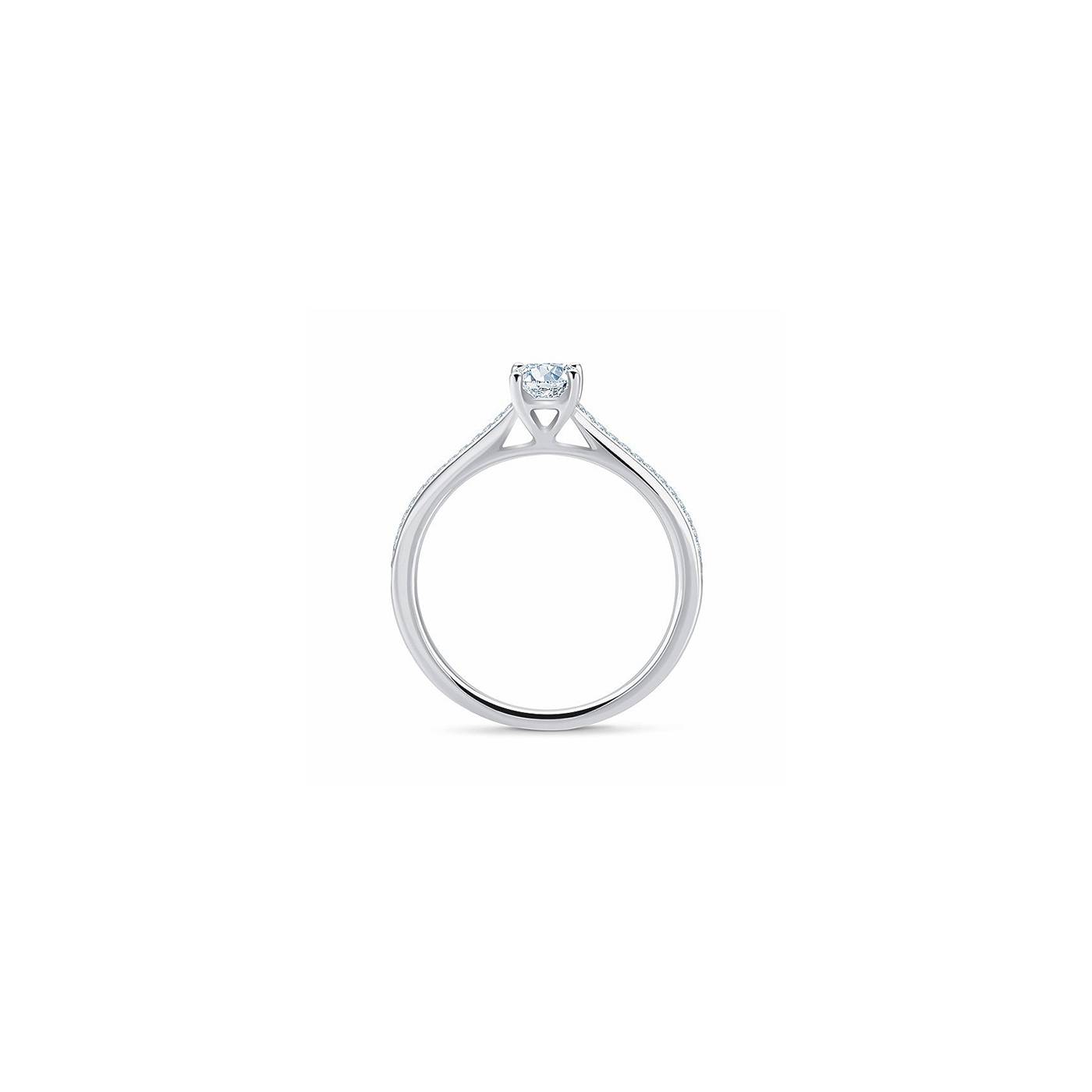 Anillo "Melody Diamonds" corte princesa. Anillo con diamante central talla princesa y diamantes más pequeños en el brazo que dan luz y brillo al conjunto de la joya. Una joya perfecta como que podrás ver en nuestra colección del clásico anillo de compromiso de diamante para tu declaración de amor, para un aniversario o para regalar en un momento especial. Visítanos sin compromiso y descubre nuestro catálogo de joyas con piedras preciosas.