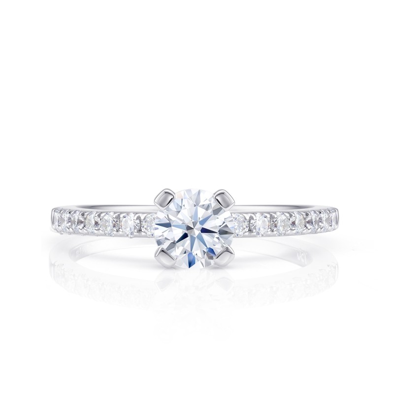 Anillo "Oslo" clásico de promesa con Brillantes pequeños en el brazo. El brillante central va engastado mediante 4 sencillas garras acompañado por un brazo recto con brillantes pequeños a ambos lados. Encuentra el modelo ideal de anillos de compromiso para mujer en nuestro amplio catálogo. Elegante y clásica sortija para Pedida de mano. Ref: SR24