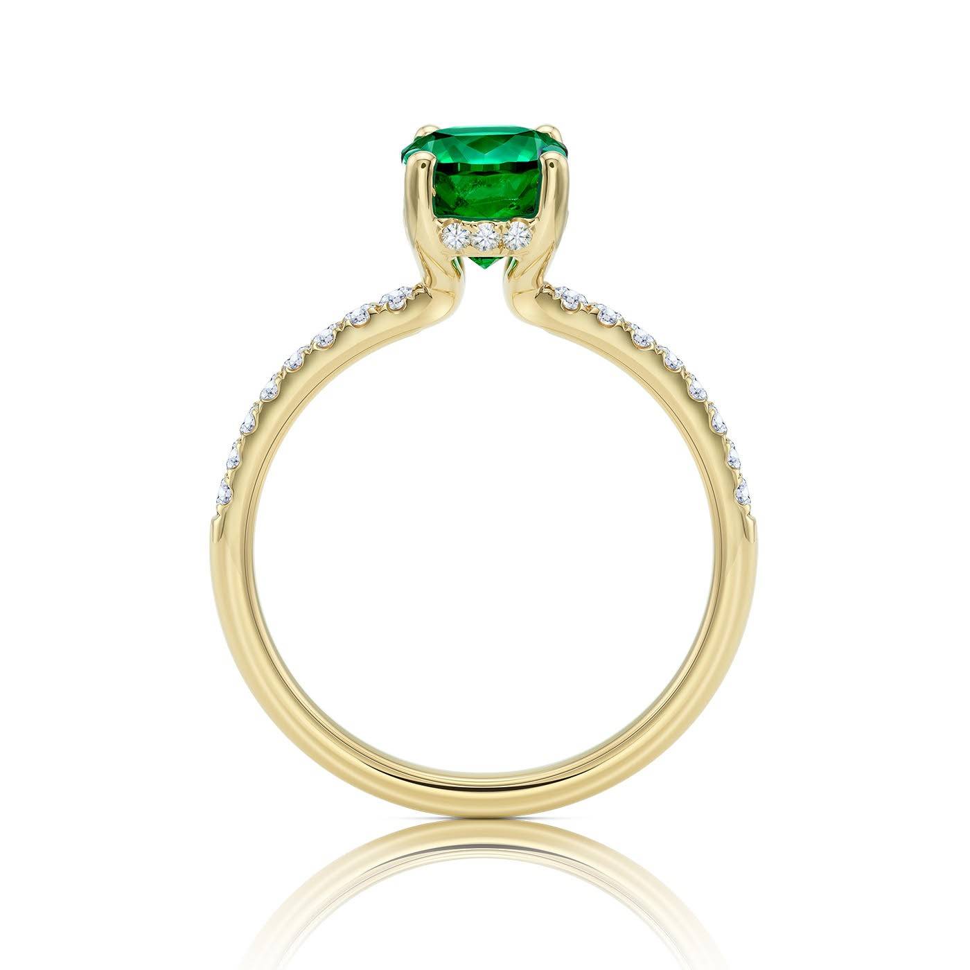 Anillo de oro 18K con Esmeralda verde intenso talla oval para mujer con diamantes de exquisita calidad en el brazo