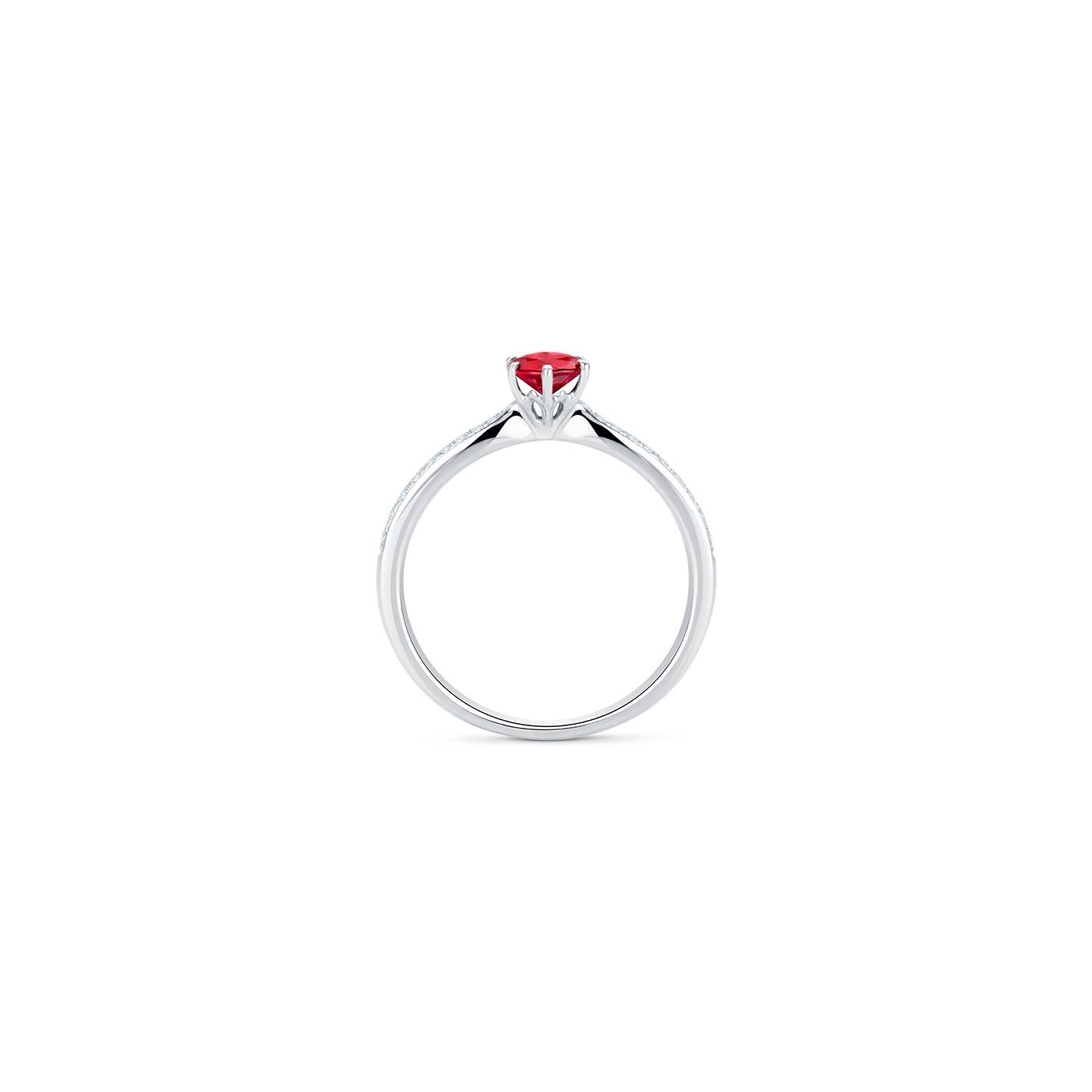 Anillo realizado en oro blanco 18K con diamantes en el brazo y rubi redondo burma de 0.50 cts