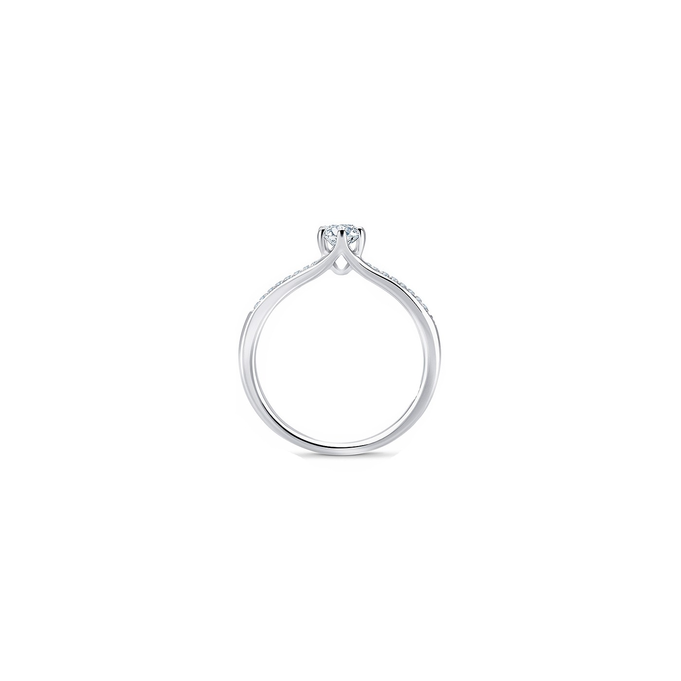 Anillo “SidneyCity” oro blanco y diamantes. Anillo de diseño con diamante central y brillantes pequeños en el brazo aportando luz a la joya, un precioso anillo con mucha clase.