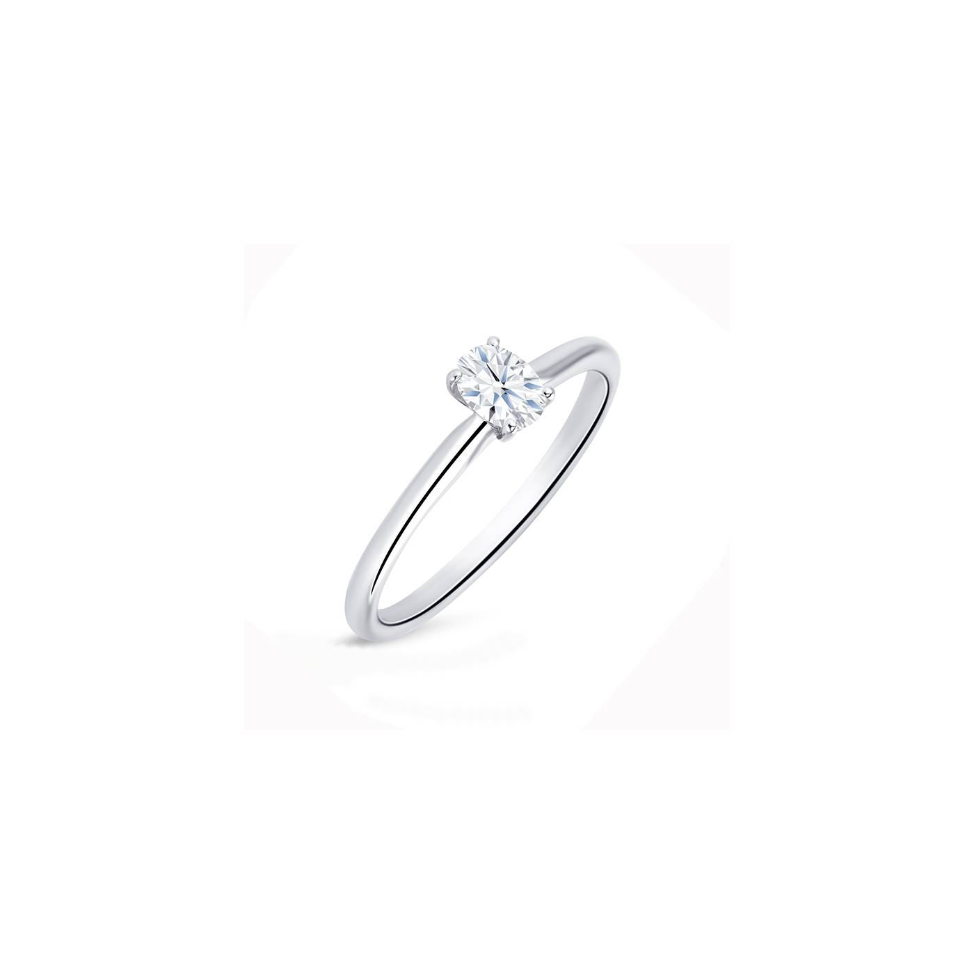 Solitario con diamante talla oval Oro Blanco "Oval S". Preciosa sortija que engasta los diamantes en garras aportando luz al conjunto de la joya. Perfecto anillo muy original por la forma del diamante.