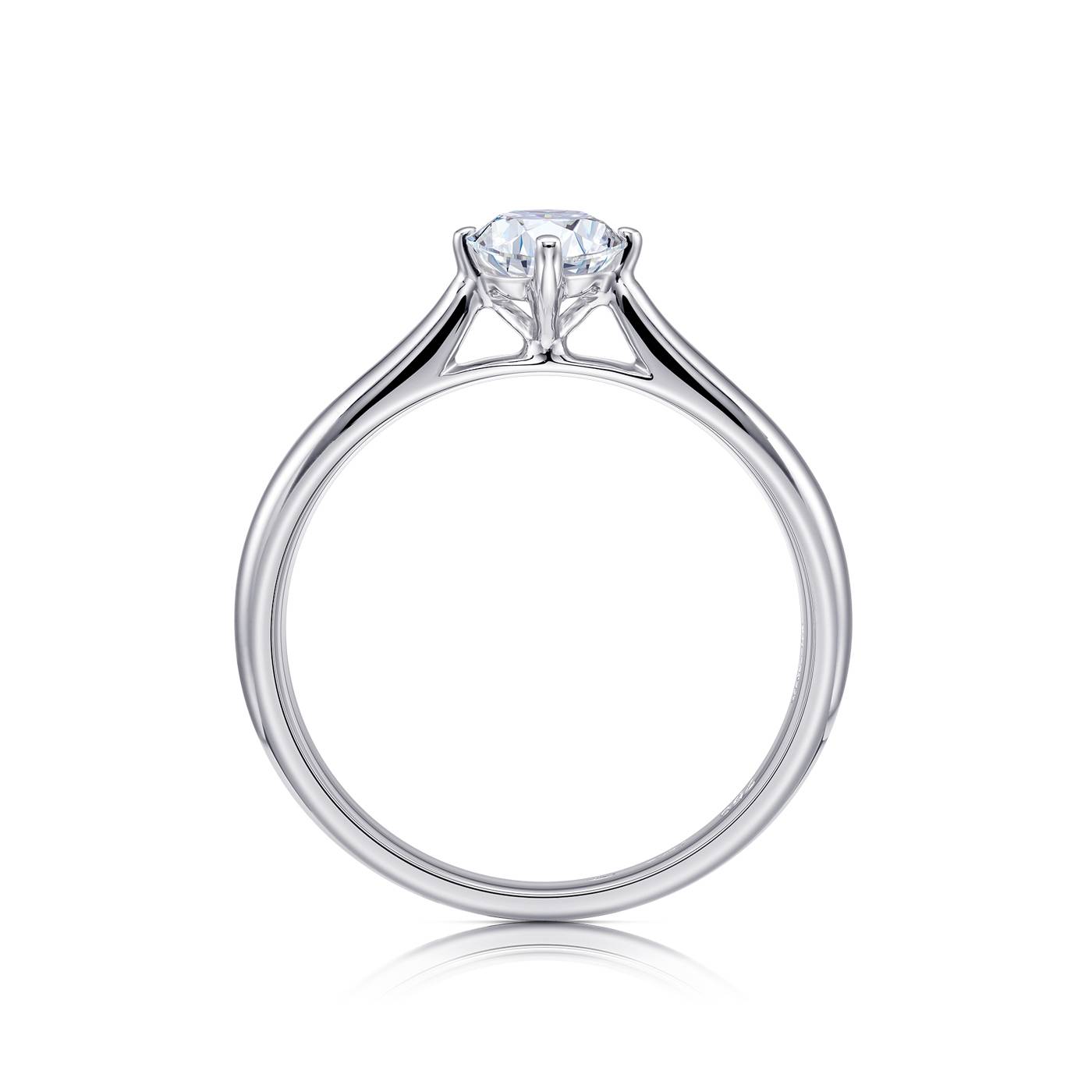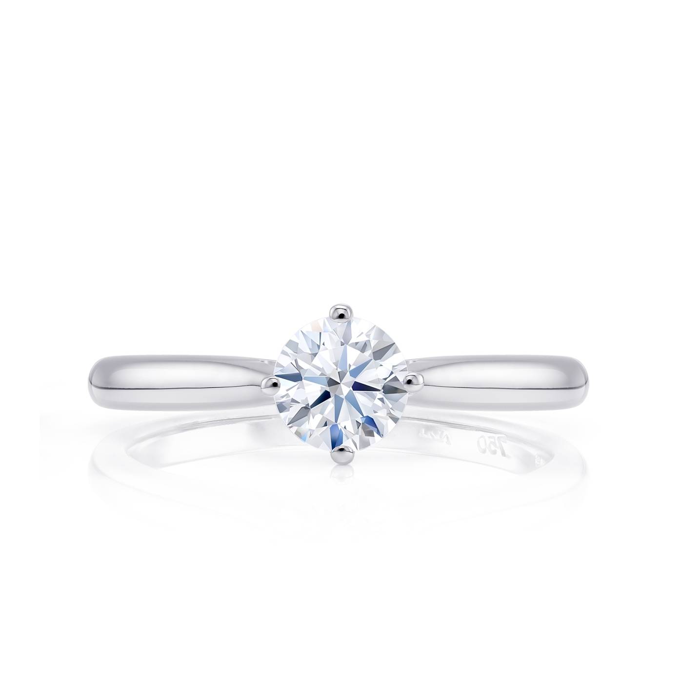 Anillo Solitario de oro blanco con brillante de 0.15 cts. "Glow S". Anillo engastado con cuatro garras discretas, em línea con el brazo del anillo. Perfecto como solitario por su sencillez y diseño clásico. Fabricado en diferentes pesos de diamantes.