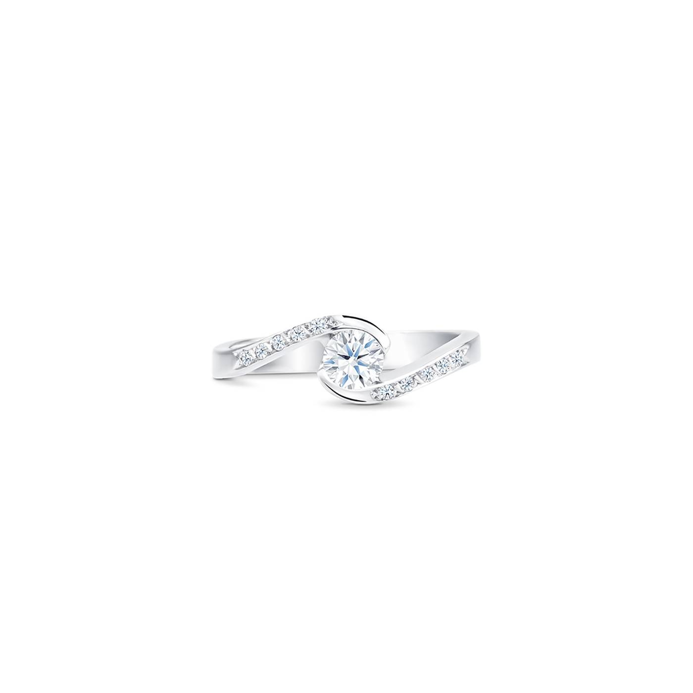 Anillo de oro blanco de 18k con diamante con un precioso diseño moderno que acompaña en forma de ese a la gema central, una pieza elegante y femenina de gran belleza. Una joya perfecta de la colección anillos de compromiso de oro blanco. Una colección de joyas para tu compromniso única que por sus calidades así como por ser diseños clásicos y moderbnos. Descubre en Jorge Juan Joyeros nuestra selección más especial de joyas para tus momentos más especiales.