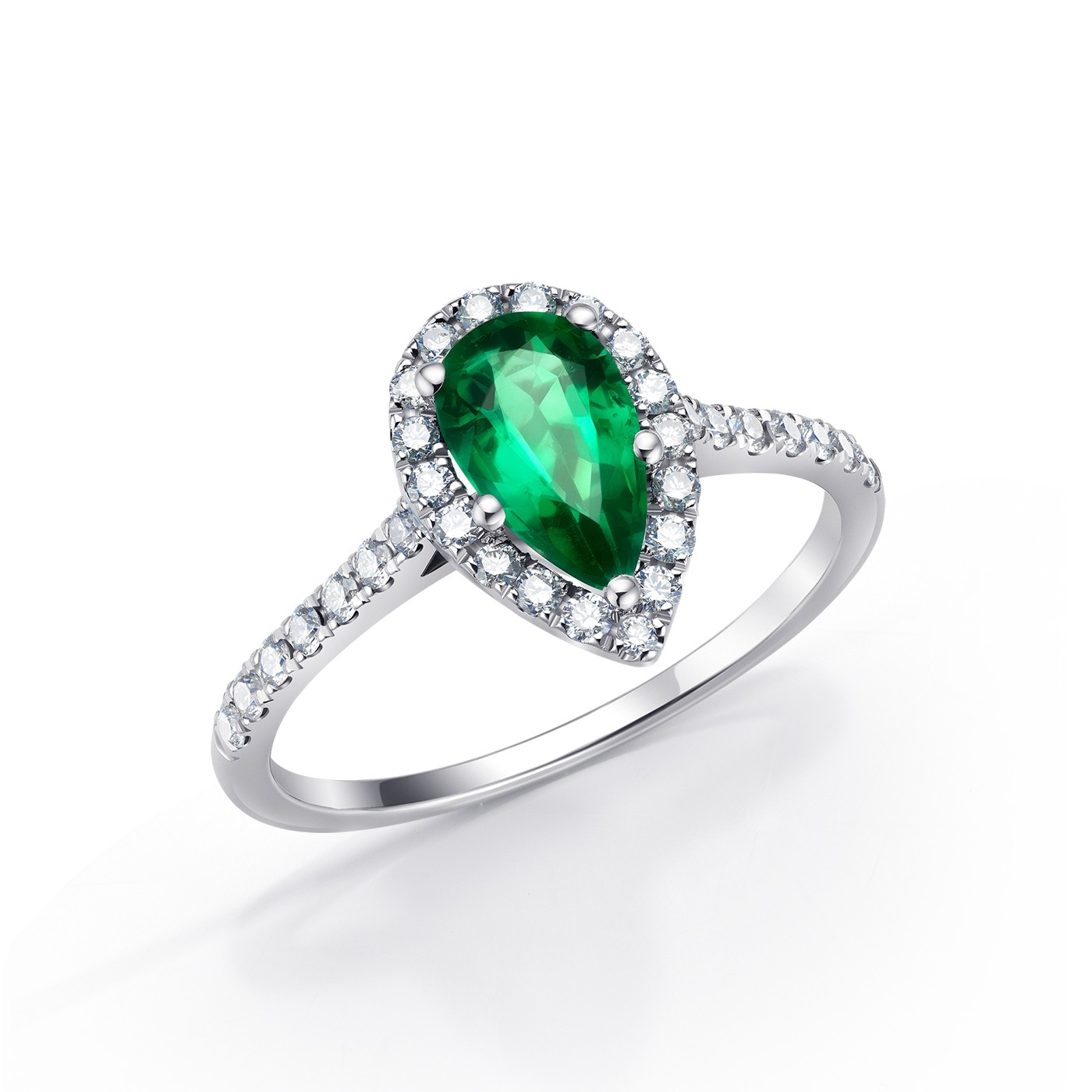 Anillo con Esmeralda colombiana talla perilla rodeada por una fina orla de Brillantes y Brillantes en el brazo. Los precios pueden variar según tamaño de las gemas.Sortija elegante con un aire señorial. El color verde simboliza la Esperanza y la Salud. REF: SH2