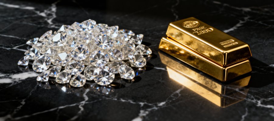 Invertir en oro o diamantes no es comparable. El oro tiene precio internacional único, mercado líquido y exención de IVA para inversión. Los diamantes tienen precios variables, mercado ilíquido y 21% de IVA.