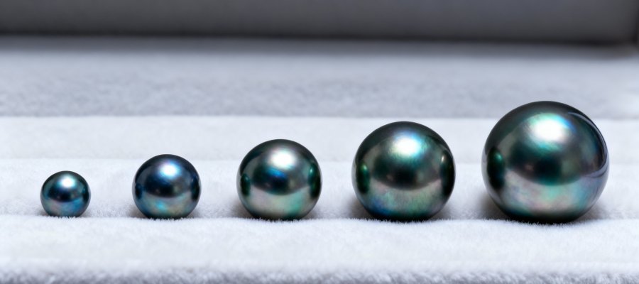 El tamaño de las perlas de Tahití varía entre 8 y 18 milímetros de diámetro. Las perlas superiores a 15mm son extremadamente raras y valiosas. El tamaño promedio comercial oscila entre 9 y 12 milímetros.