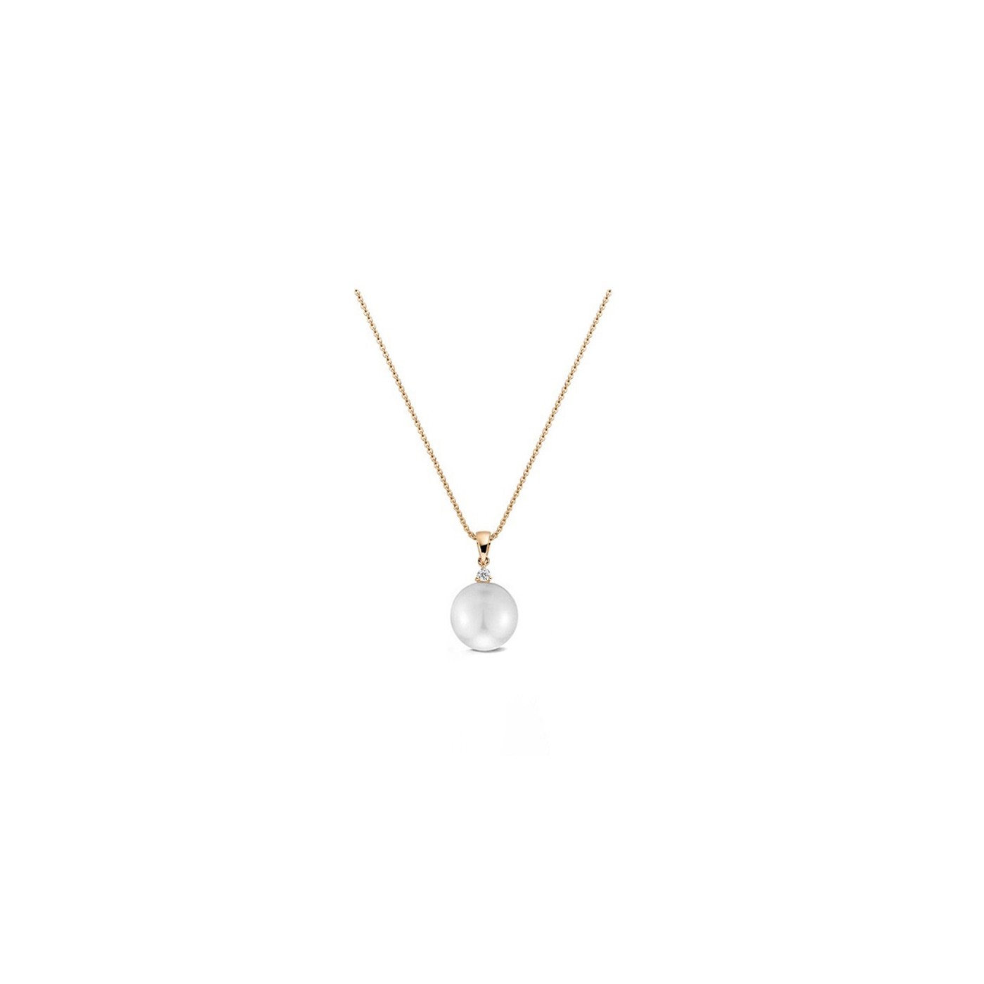 Colgante de Perla Blanca Australiana de 10 mm con diamante de 0.05 cts en oro rosa