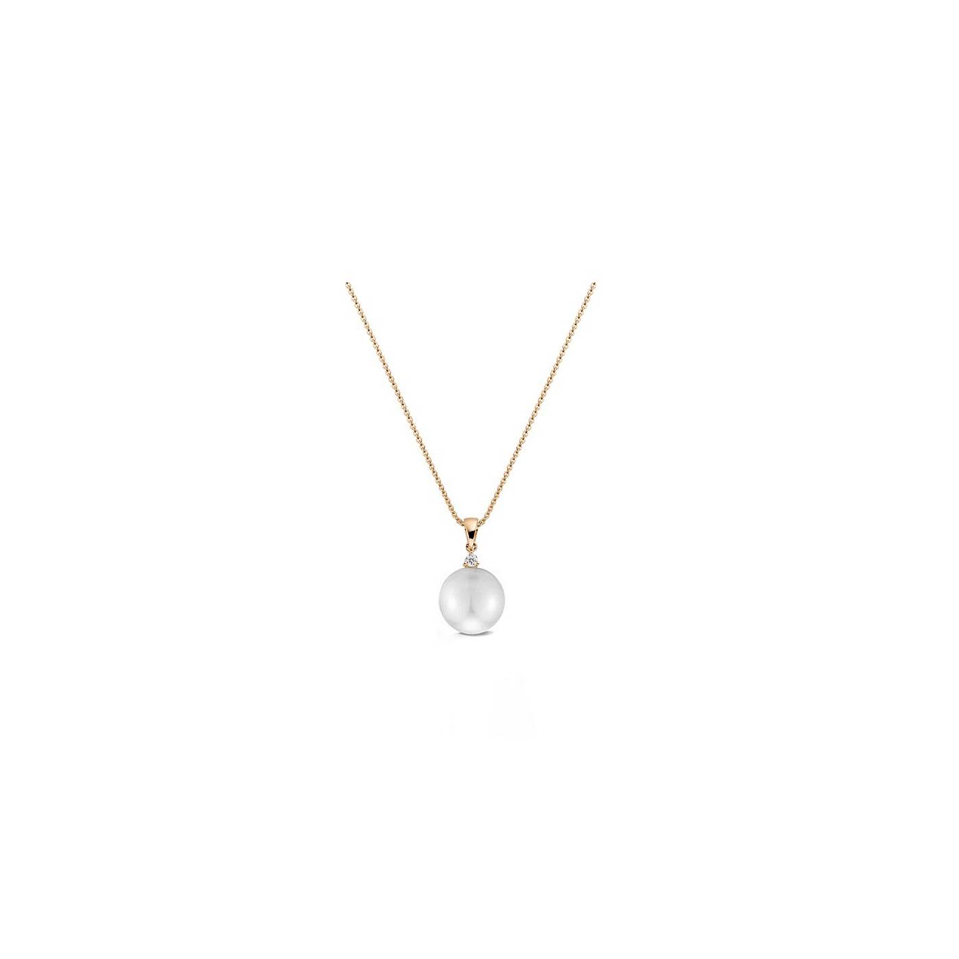 Colgante de Perla Blanca Australiana de 10 mm con diamante de 0.05 cts en oro rosa. El Diamante aporta un brillo extra a la calidez y elegancia de la perla australiana. Colgante con perla de color blanco intenso y con un brillo excepcional para lucir el día a día o en momentos especiales.