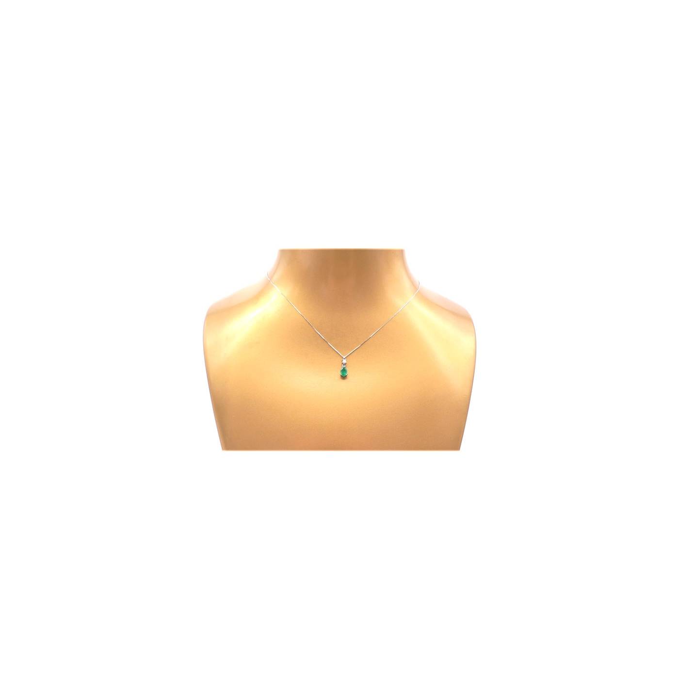 Colgante con Esmeralda colombiana natural talla Perilla y un brillante en oro blanco . Colgante sencillo para todos los días. Incluye la cadena de oro blanco. Colgante para aniversario.