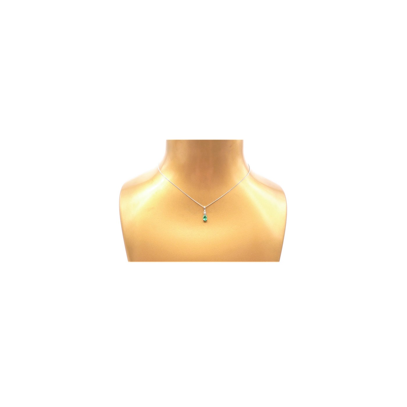 Colgante con Esmeralda colombiana natural talla Perilla y un brillante en oro blanco. Colgante para lucir todos los días. Incluye la cadena fina de oro blanco. Elegante Colgante para aniversario.