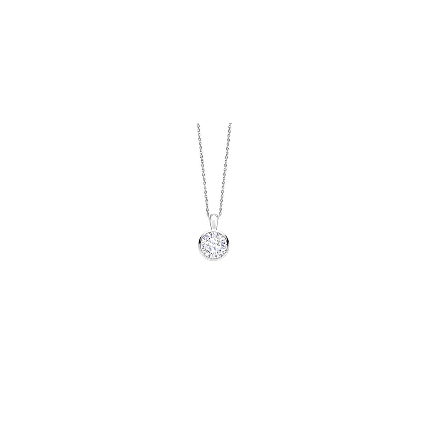 Colgante con Brillante en chatón de oro blanco de 18k. Colgante elegante de llevar con cadena de oro blanco de 18K. Consulte diferentes tamaños en Jorge Juan Joyeros. Ideal como regalo de aniversario.