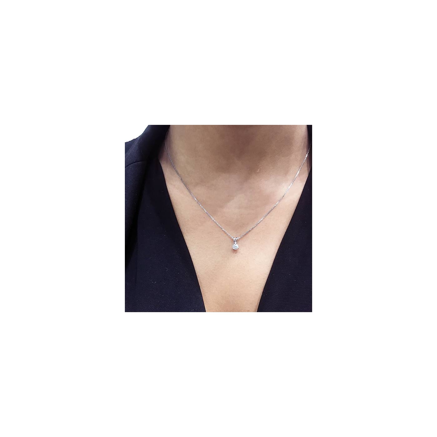 Colgante 3 garras con Brillante engastado en oro blanco 18K y asa en forma de V Shalosh. Elegante colgante, perfecto complemento para lucir a diario. Se fabrica en varios tamaños. Cadena de oro blanco 18K.