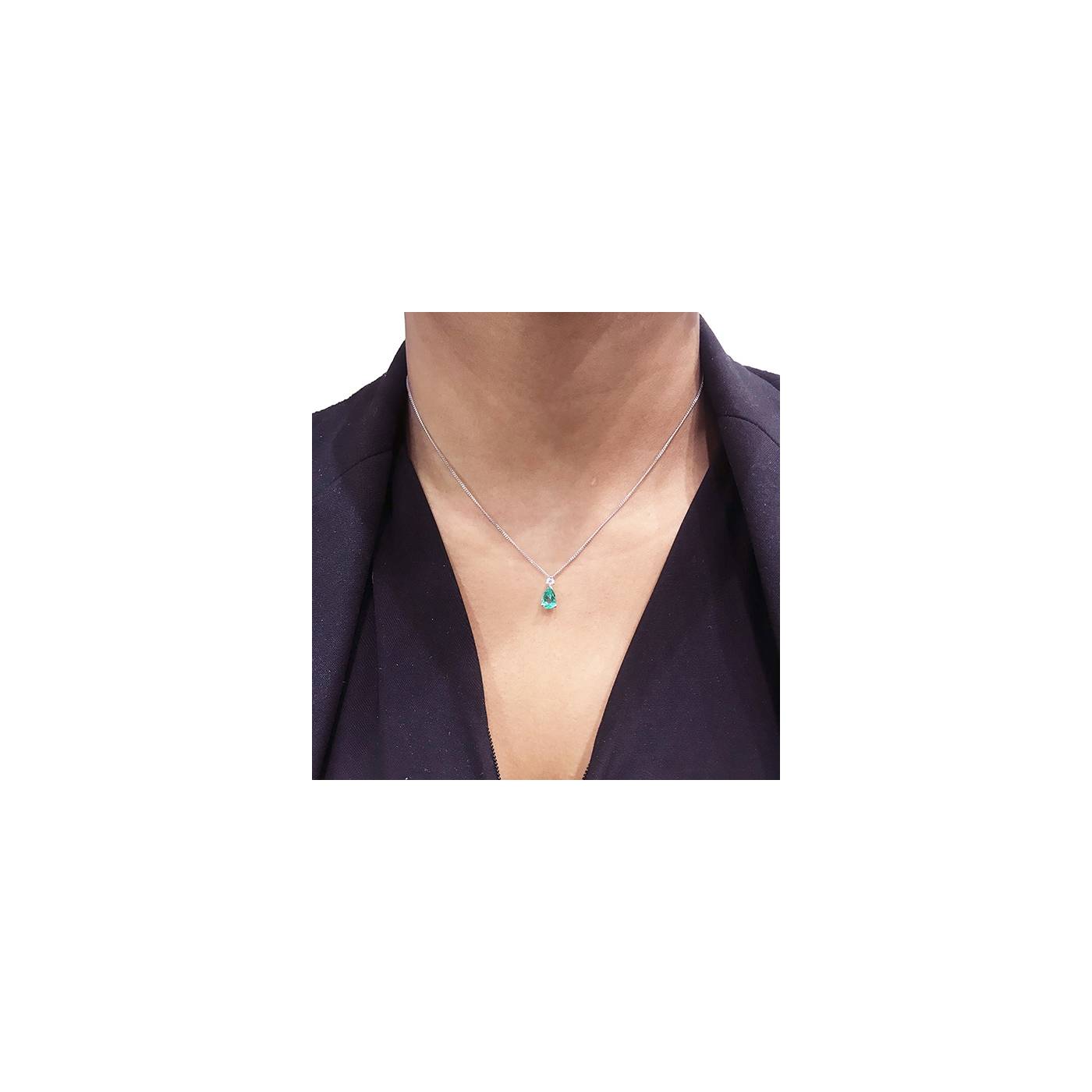 Collar "Green Drop" con Esmeralda colombiana talla Pera y diamante en oro blanco de 18K. El brillante pesa 0.07 quiates. Elegante collar con Esmeralda, muy favorecedor para pieles morenas, perfecto collar para regalo. REFERENCIA CR 9 ESM