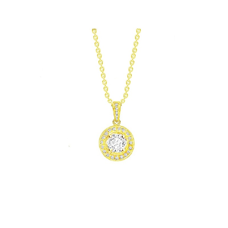 Collar en Oro Amarillo 18k y Diamantes "Suntory". Colgante clásico ideal para lucir en cualquier momento del día. El brillante central pesa de 0,20 cts de alta calidad y certificado gemológico.