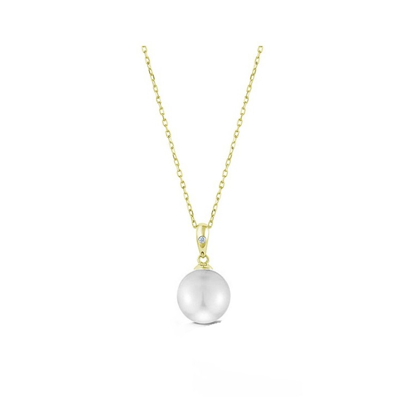 Gargantilla en Oro Amarillo con Perla redonda y Diamante