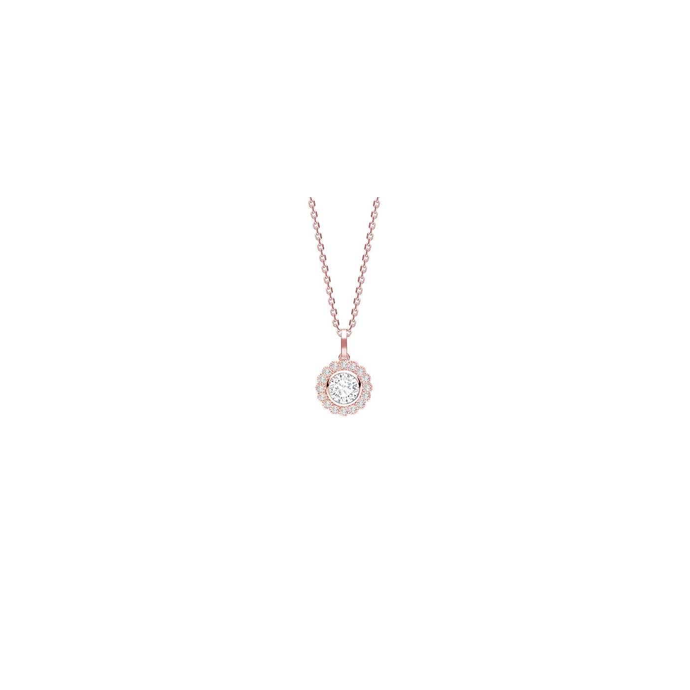 Colgante "Osaka" diamantes oro rosa Rosetón - CR 13 OR, con cadena de nuestra colección colgantes de diamantes. El brillante central va rodeado por una orla de brillantes con forma de flor. Collar especial, perfecto para acompañar una joya tan importante como es el anillo de compromiso o para regalar en ocasiones especiales. Visita sin compromiso nuestras joyerías en Madrid.