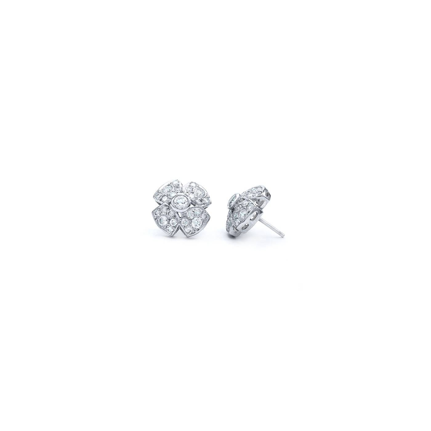 Pendientes en forma de flor con Diamantes "Honey". Elegantes pendientes de diseño exclusivo con forma de rueda. Llevan un brillante central y brillantes alrededor formando un conjunto favorecedor . Pendientes para lucir en momentos especiales. REFERENCIA: PM 39