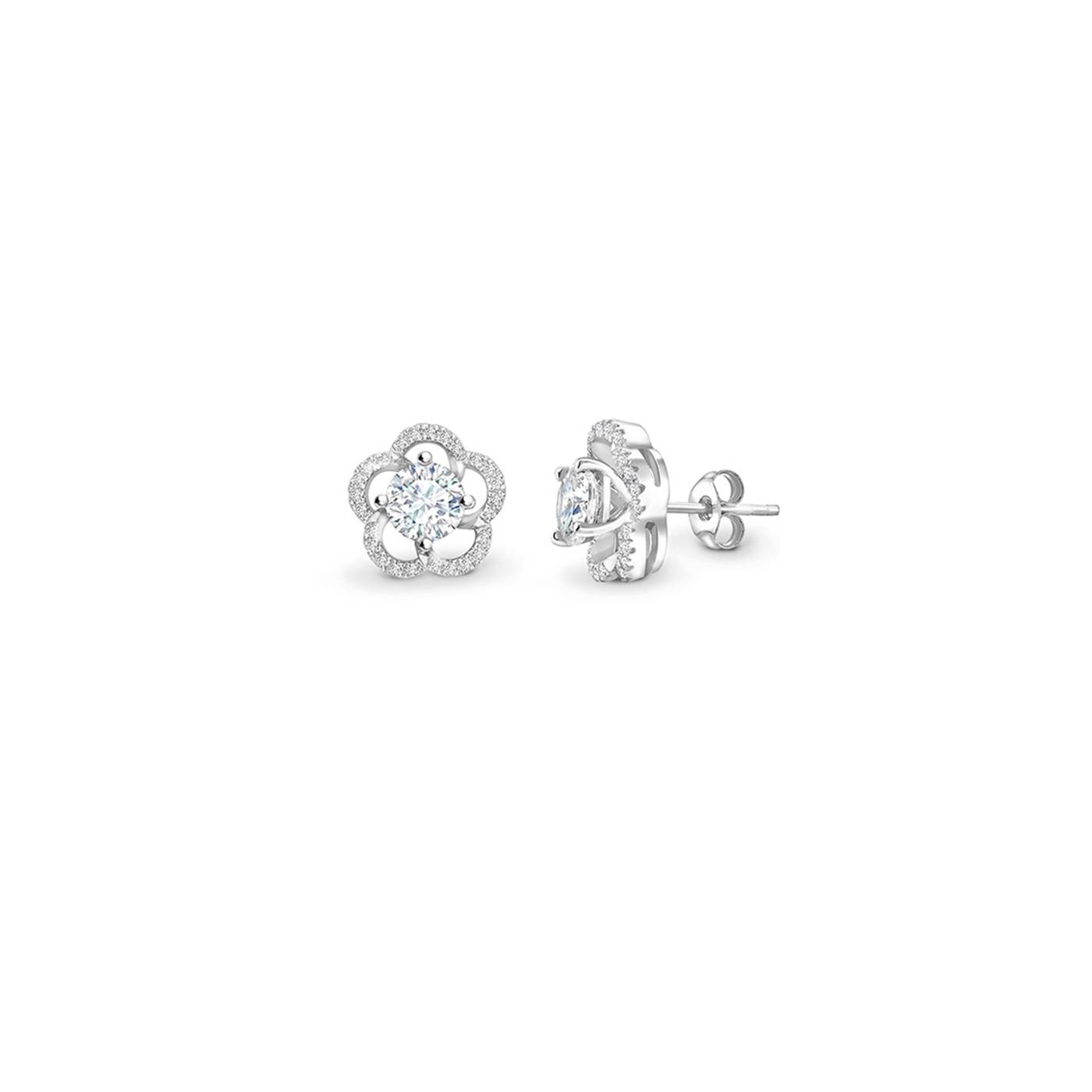 Pendientes de Novia con brillantes y orla de brillantes pequeños engastados con 4 garras cuadradas en oro blanco de 18k. Diseños de Pendientes de Novia clásicos y elegantes para lucir a diario o en ocasiones especiales, y siempre a juego con nuestros anillos de compromiso de oro blanco con diamantes. Pendientes cómodos ideales para el día de la boda y para regalar en ocasiones especiales.