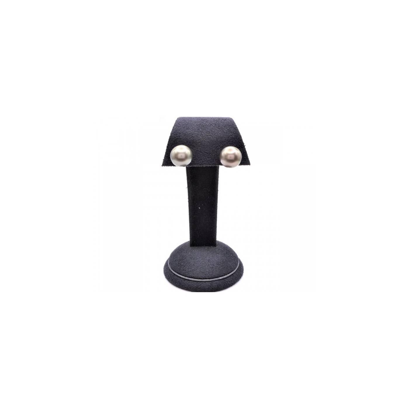 Pendientes de Perlas Tahiti redondas de 10 mm aproximadamente montadas en oro blanco de 18k . La Perla Tahiti procede de los Mares del Sur favorece el rostro. Pendientes sencillos para lucir en todo momento del día.