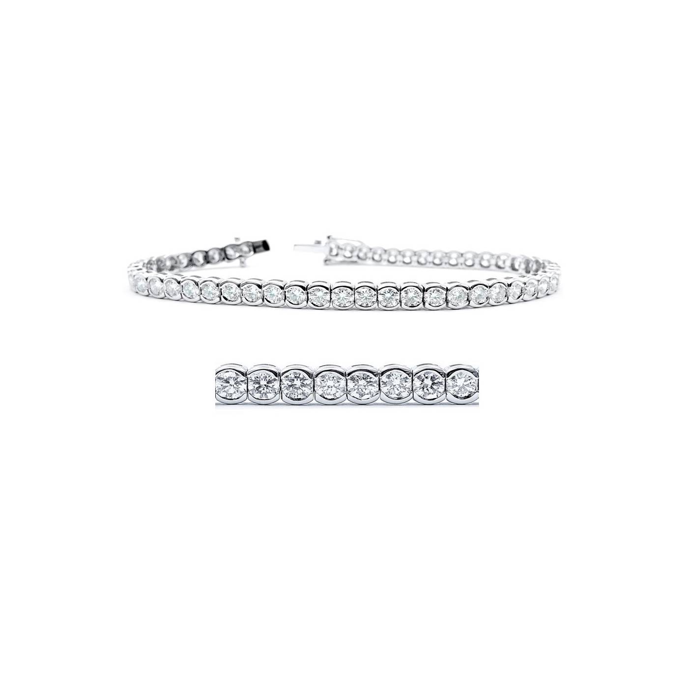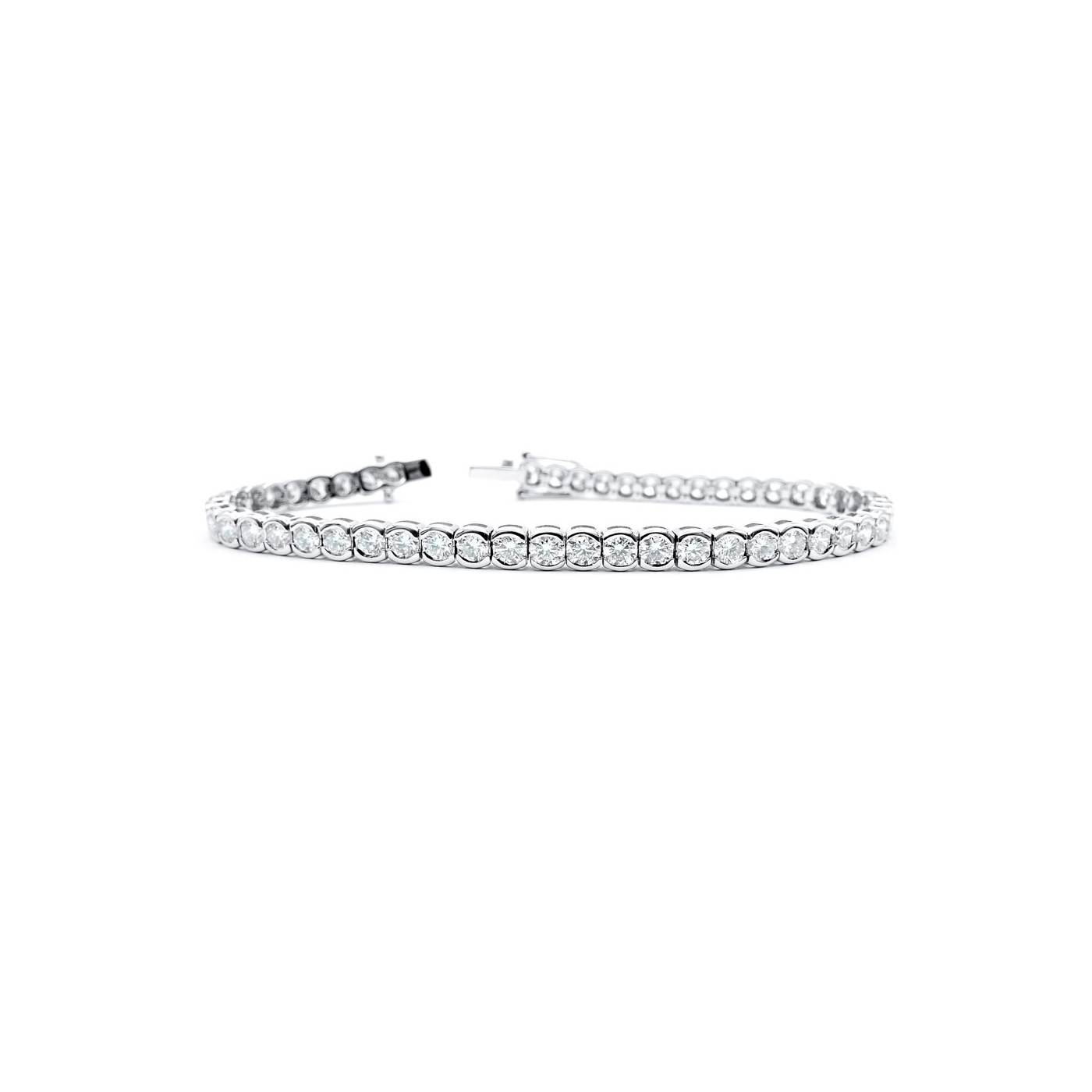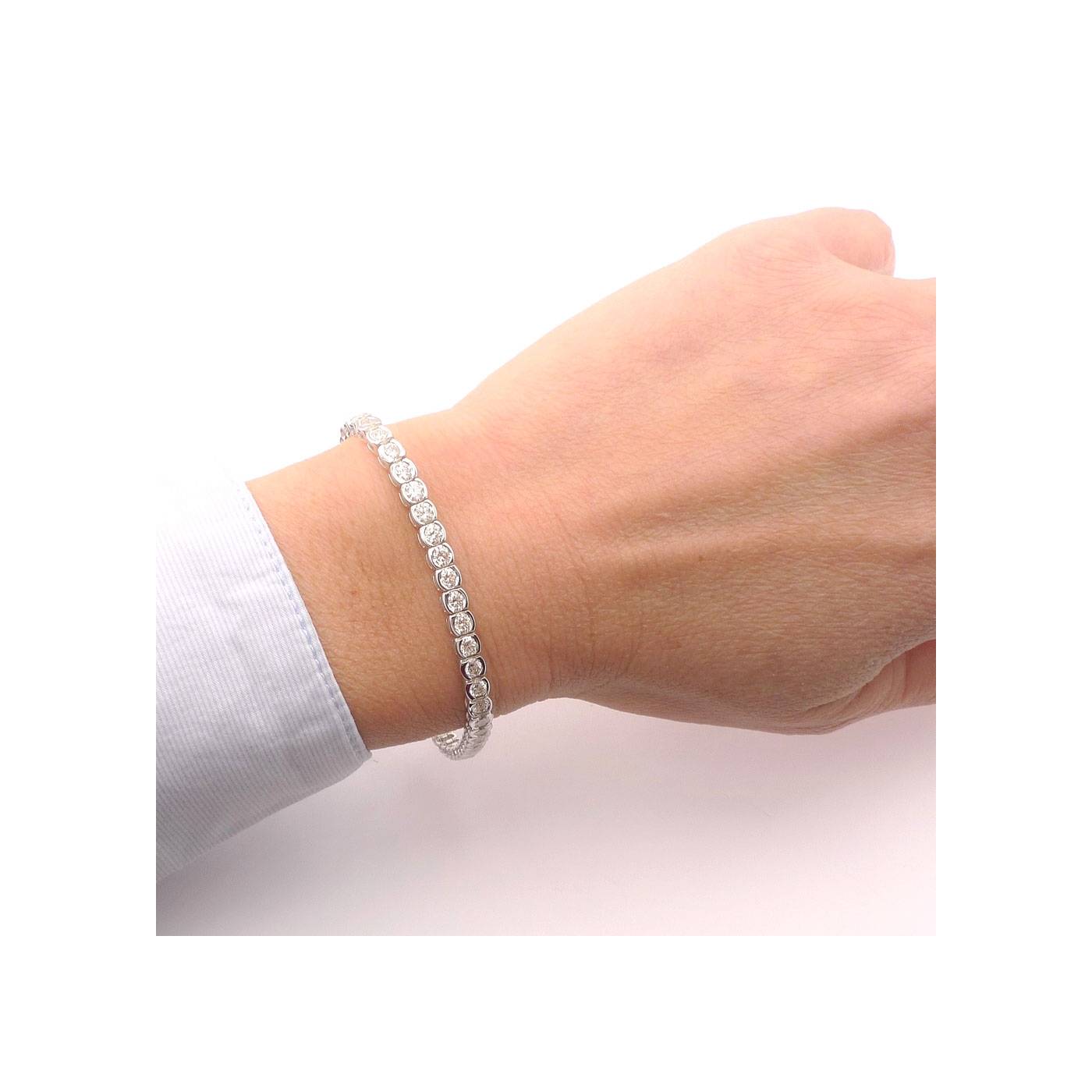 Pulsera "Concept" oro blanco y diamantes engastados en chatones ovalados. Esta elegante pulsera se compone de 51 brillantes de 3 mm aprox cuyo peso es de 5,60 quilates en total. Pulsera de estilo riviere elegante para lucir a diario o en ocasiones especiales. Aquí podrá ver pulsera con diamantes y Diseños exclusivos de Jorge Juan Joyeros, Madrid. REF: RB 6