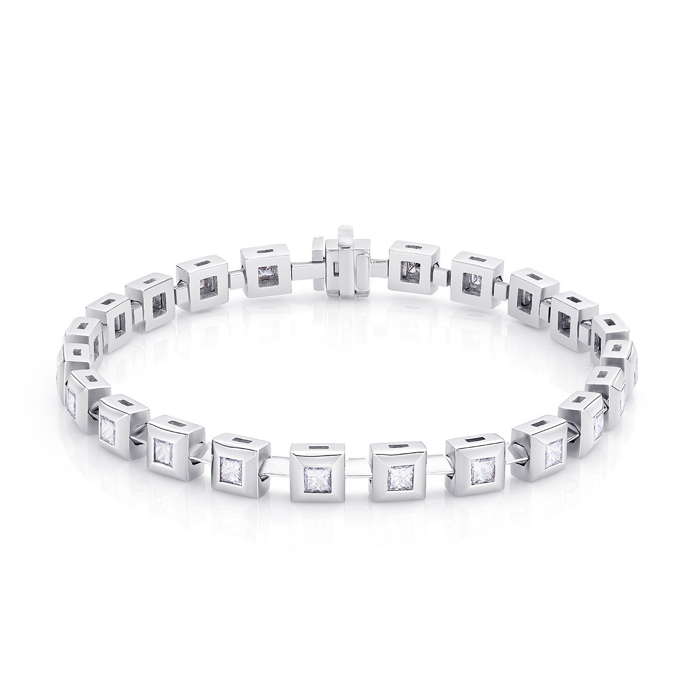 Pulsera de Diamantes Corte Princesa en Oro Blanco de 18K para Mujer