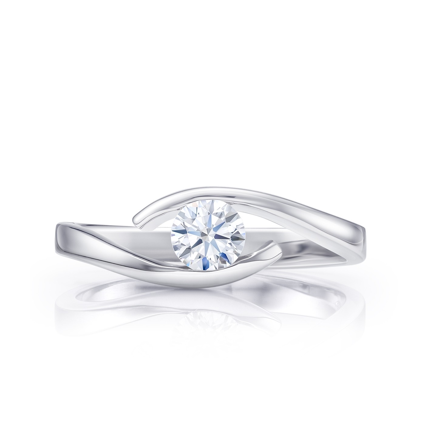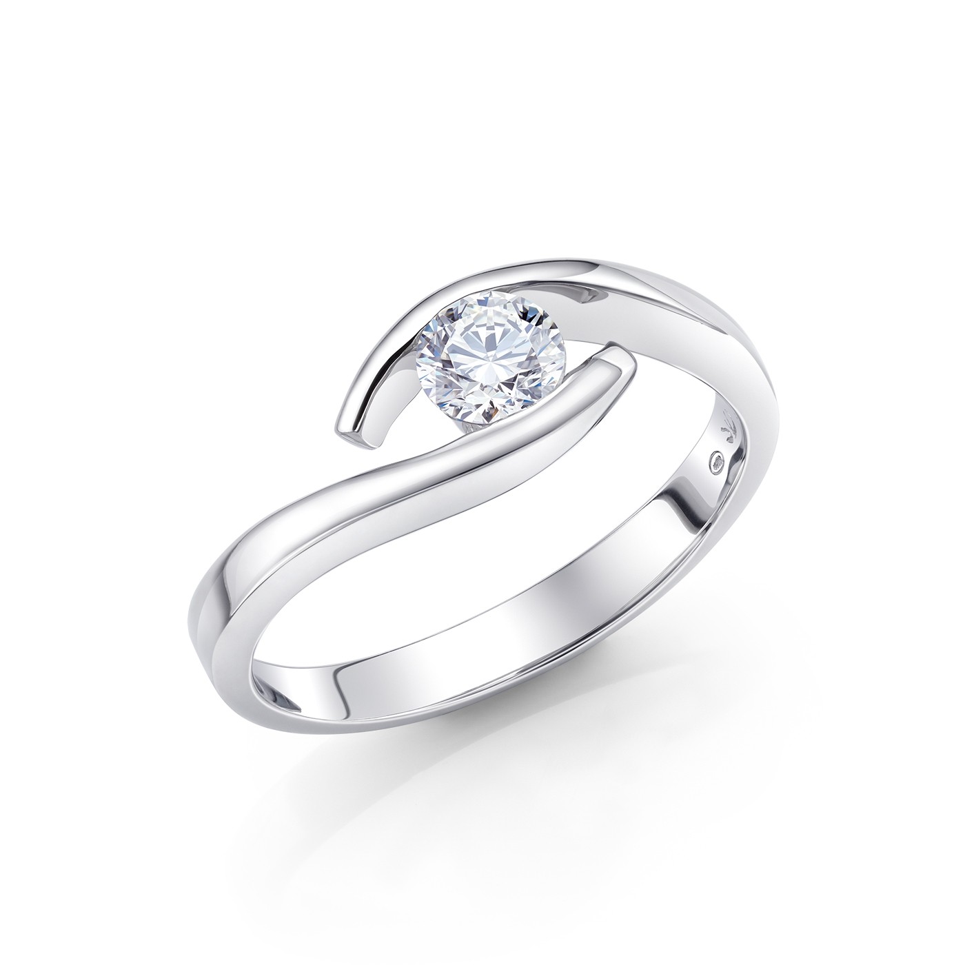 Solitario Oro Blanco y Diamante "Hikari S" desde 0.10 cts. diseño moderno