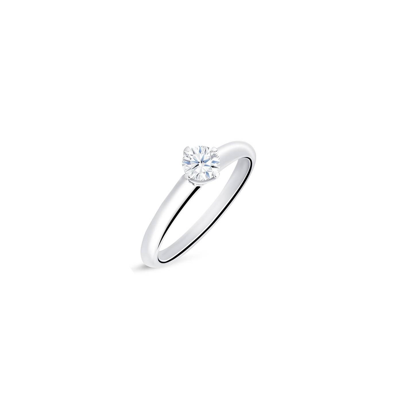 Solitario diamante 0.30 cts. en oro blanco "Roma S". Anillo elegante y clásico con el diamante engastado con cuatro garras dispuestas en diagonal aportando un diseño más moderno. Se fabrica en varios tamaños.