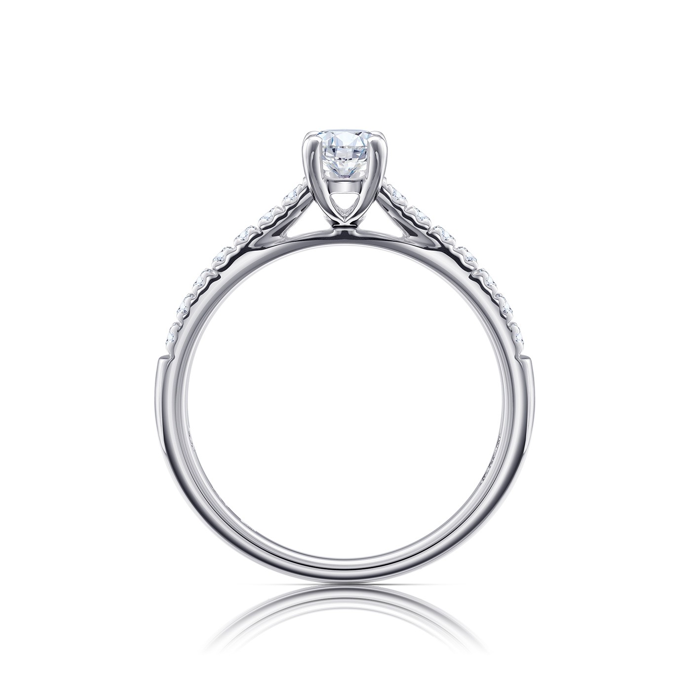 Sortija "CairoStyle" en oro blanco con diamante central talla Oval y diamantes pequeños en el brazo. Una colección única de anillos solitarios de diferentes tamaños con perfectas calidades y precios. Los colores mínimos de nuestros diamantes son G VS2, convirtiendo nuestras gemas en unas de las más deseadas del sector joyero. Todas nuestras sortijas las realizamos en oro macizo de 18 kilates.