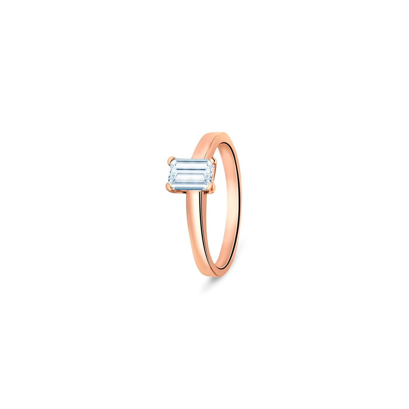 Sortija de oro rosa con diamante talla esmeralda "EmeraldCut" engastado en 4 garras rectas acentuando la forma del Diamante. La originalidad de este anillo radica en su sencillez y pureza de líneas. Consultar disponibilidad de nuestra colección de anillos de oro rosa con diamantes talla esmeralda. Descubre en nuestras joyerías una amplia colección de diseños de anillos de compromiso oro y diamante. Disponemos de másde 100 diseños diferentes para tu pedida de mano. REF: SCER 21 MODELO: EMERALD. CUT SOLITAIRE