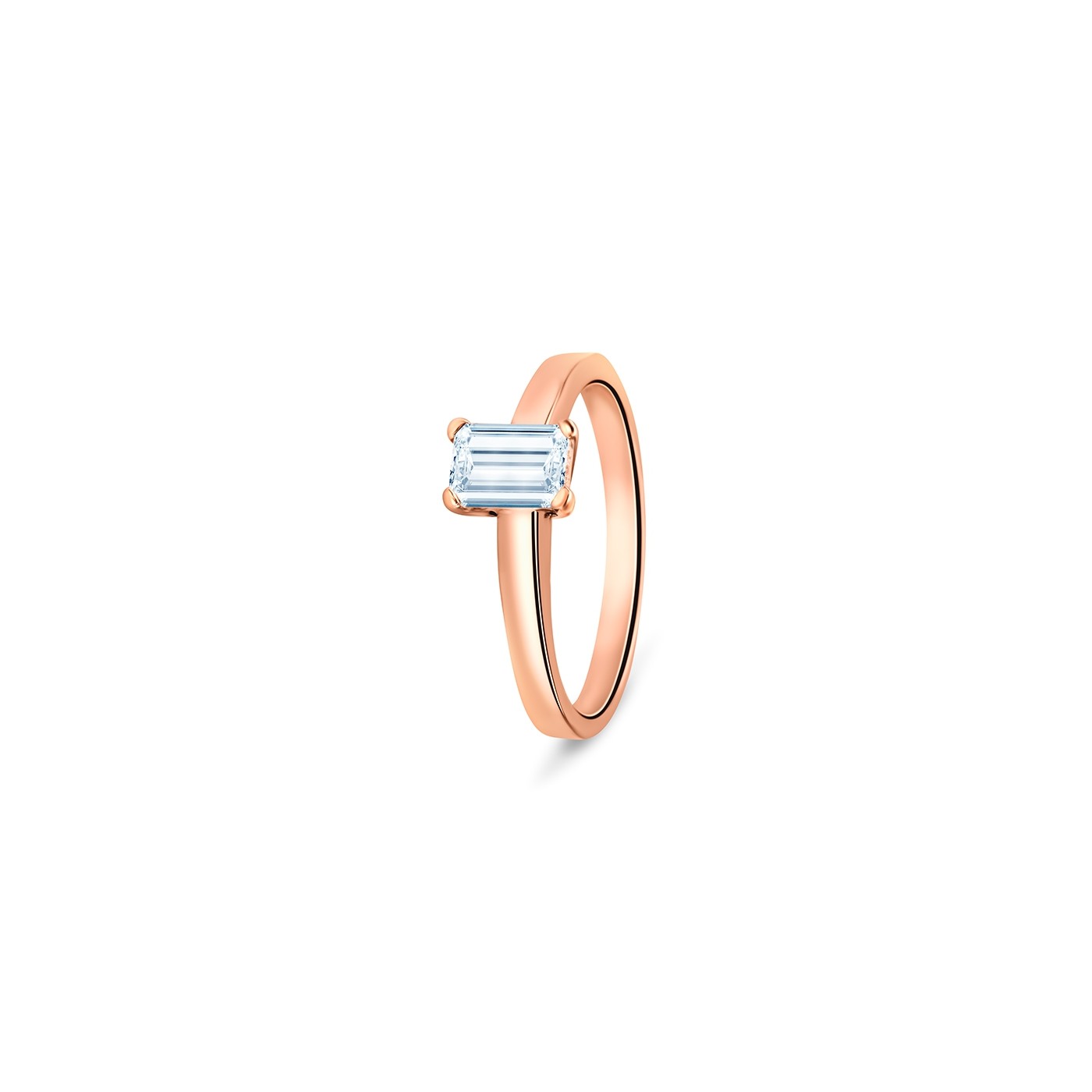 Sortija oro rosa Diamante corte Esmeralda en cuatro garras